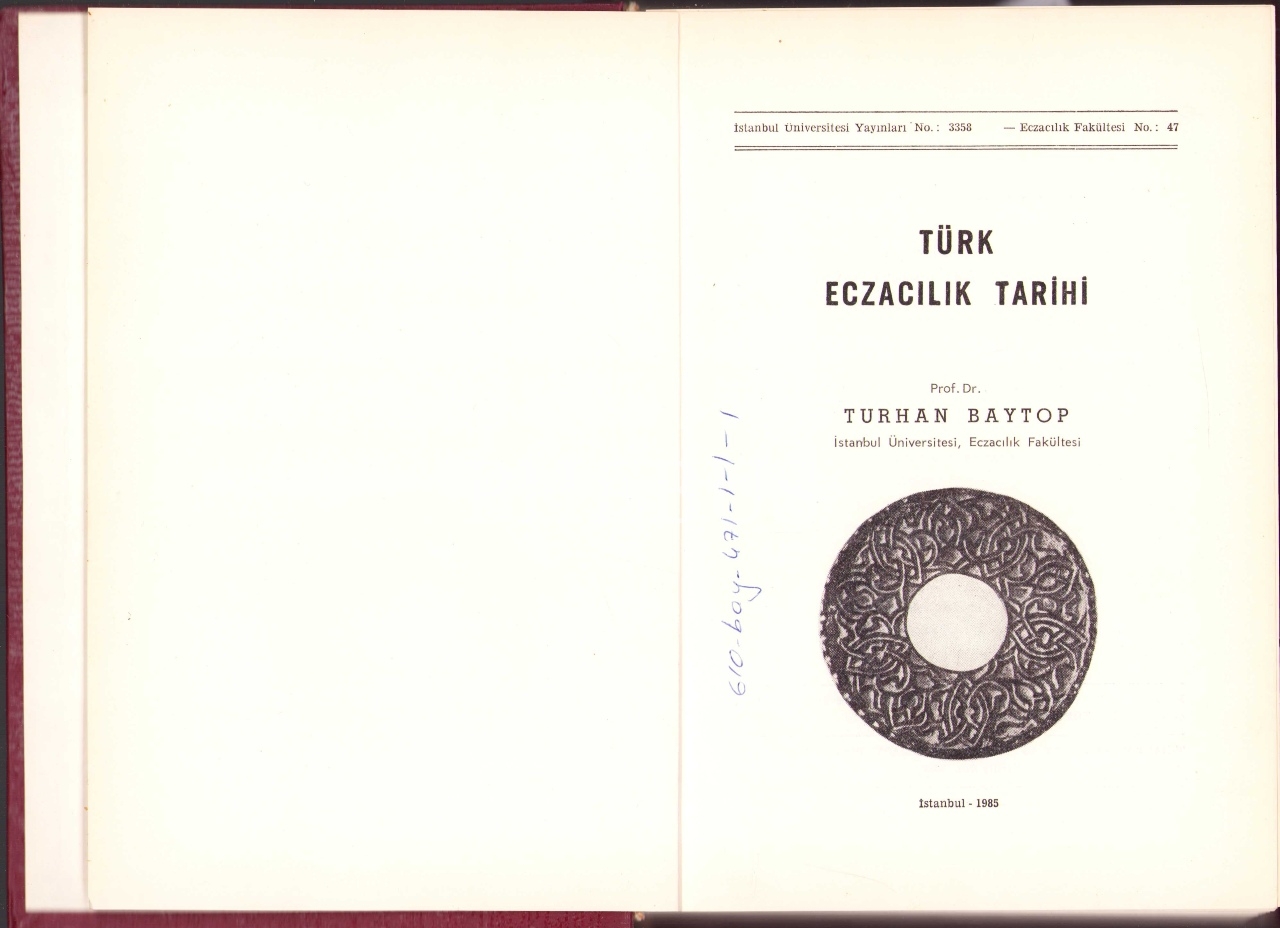 Botanikçi ve Eczacı Turhan Baytop'tan Yazar Kevork Pamukciyan'a İthaflı ve İmzalı "Türk Eczacılık Tarihi", İstanbul Üniversitesi Yayınları 1985,472 sayfa, 17x25 cm