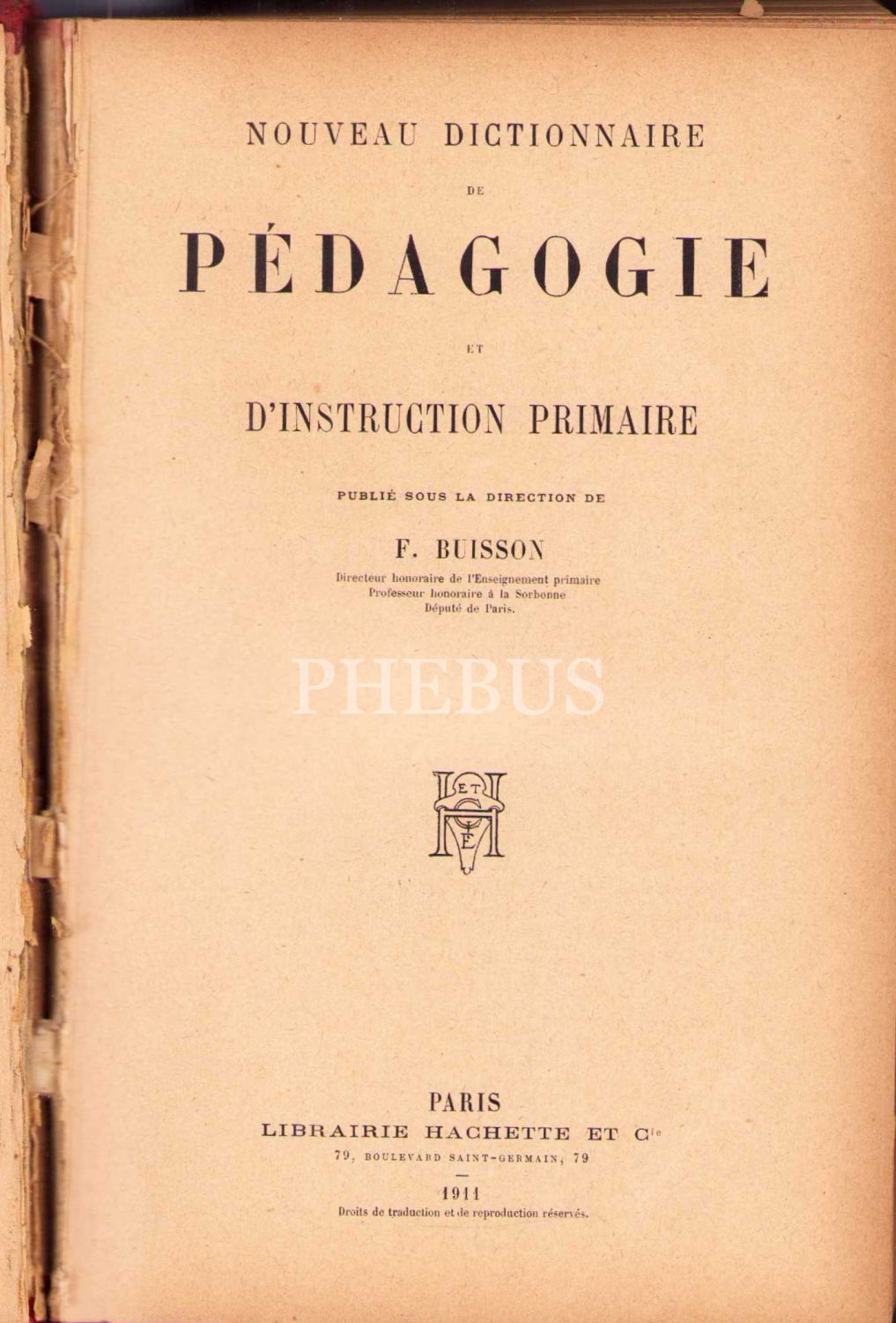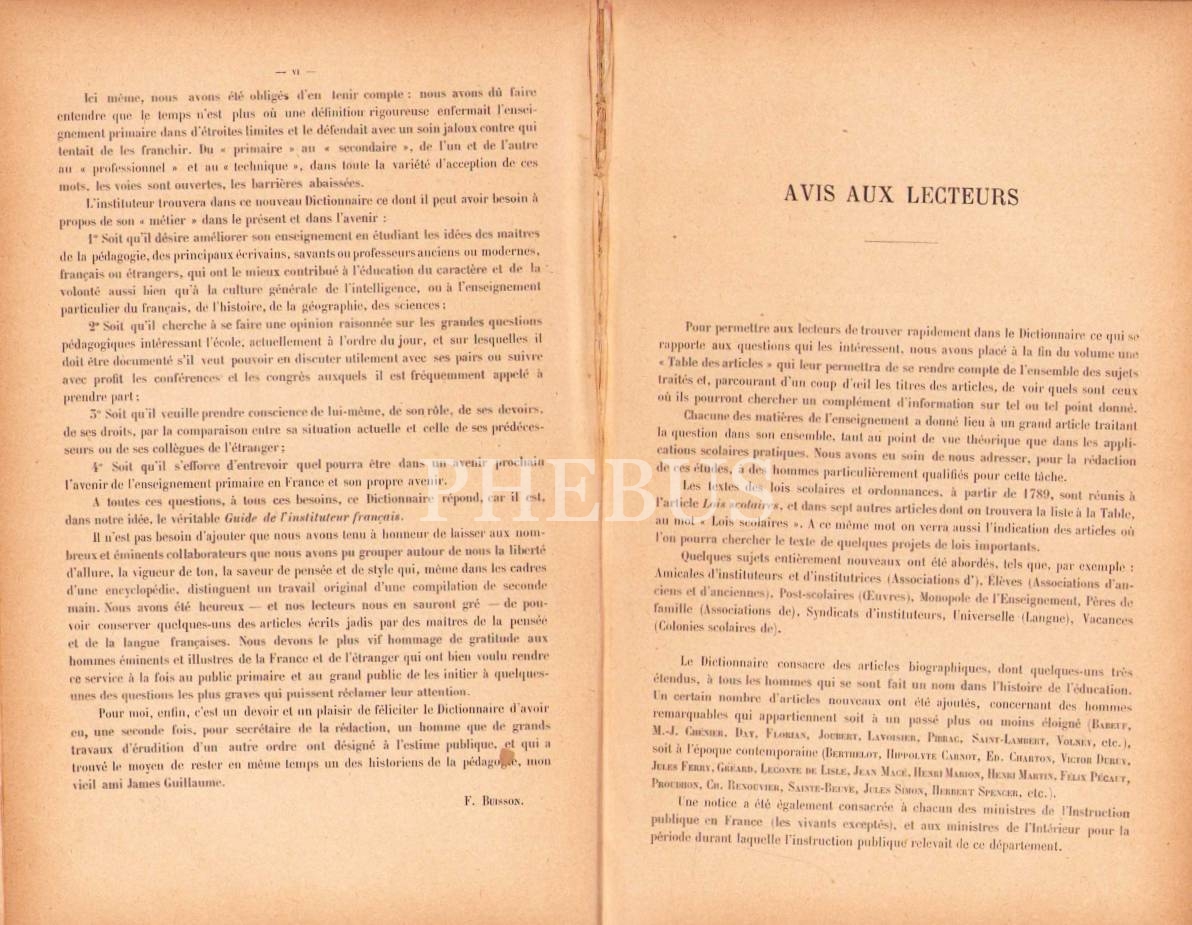 Fransız Eğitimci ve Siyasetçi Ferdinand Buisson'un Fransızca Pedagoji Sözlüğü [Dictionaire de Pédagogie et d'instruction Primaire", 2087 sayfa, 18x27 cm
