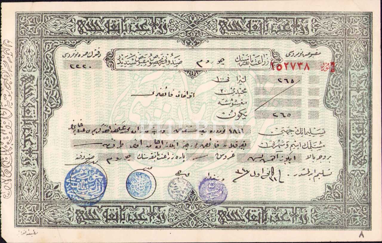 Osmanlıca Ziraat Bankası makbuzu, Çorum 1334, 14x22 cm