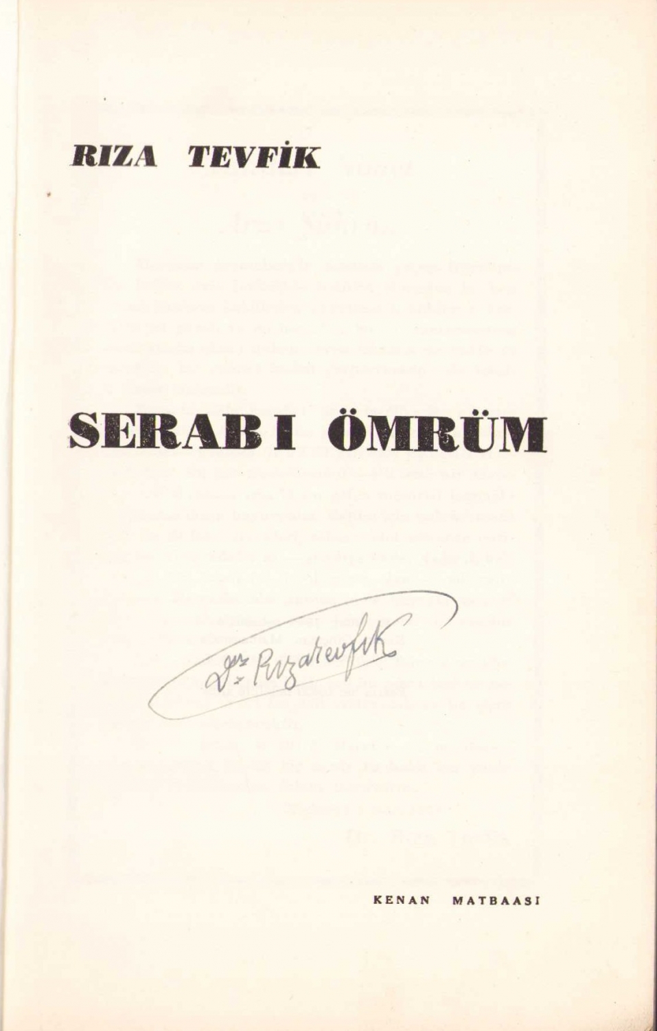 Serab-ı Ömrüm, Rıza Tevfik Bölükbaşı, İstanbul, 1949, yazarından imzalı, 357 sayfa, 15x23cm
