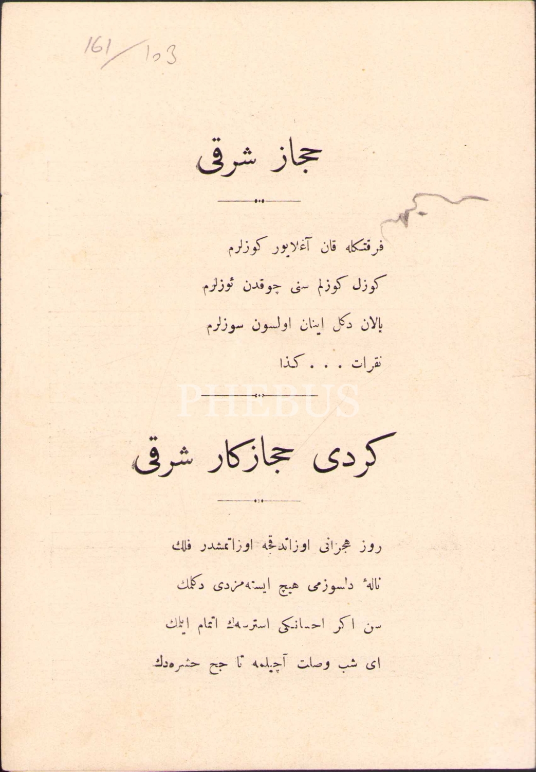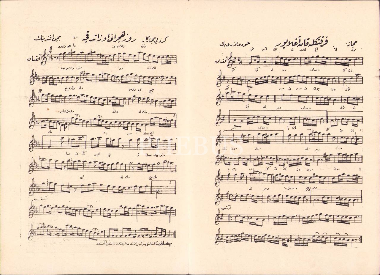 Udcu Kudmanizade Şamlı İskender yayınları ve Müntehabat serisinden, Bimen Efendi ile Udî Nuri Bey'e ait Osmanlıca nota, 14x20 cm