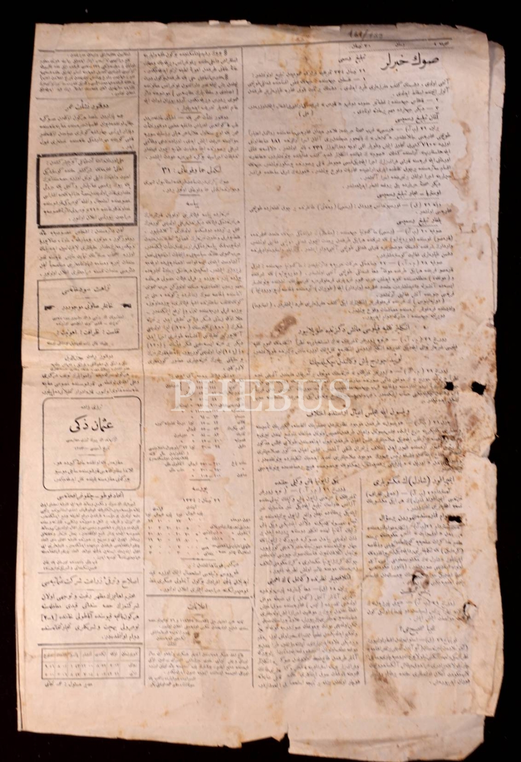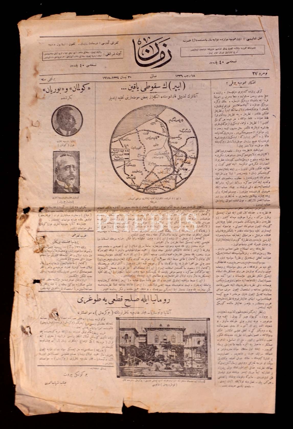 Osmanlıca Zaman gazetesi 27. sayı, 30 Nisan 1918, 30x46 cm, yıpranmış haliyle