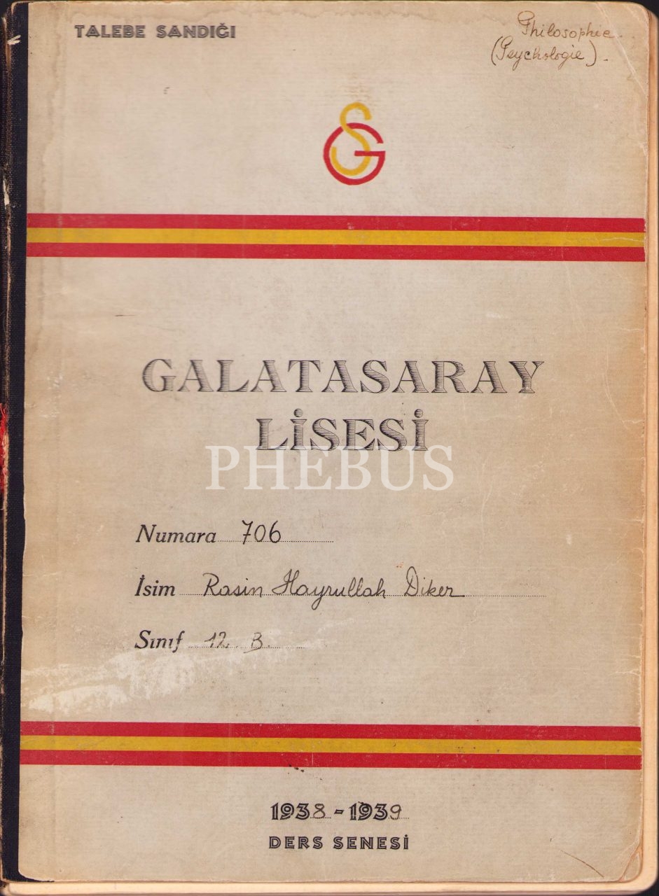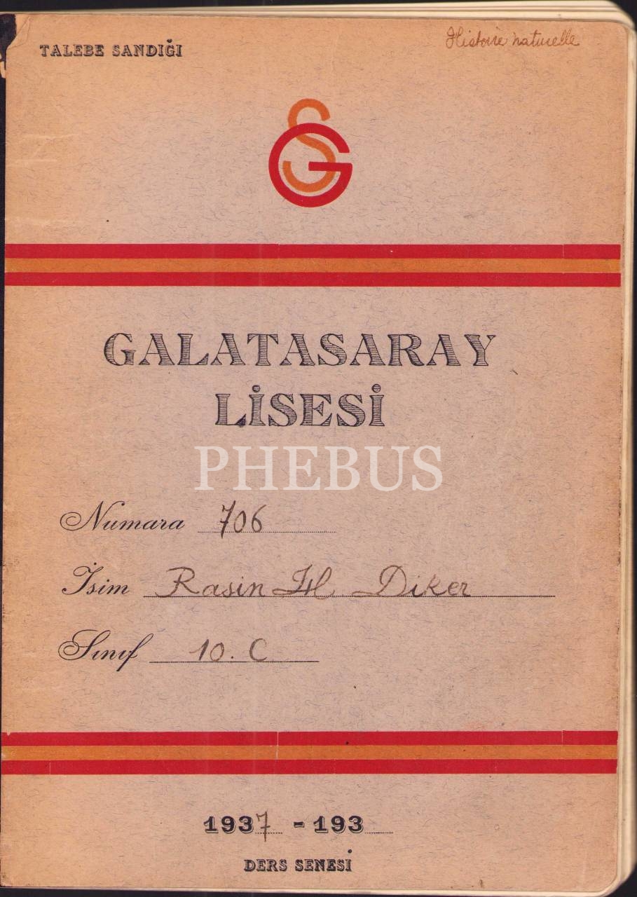 Galatasaray Lisesi'nde 1937, 1938 ve 1939 senelerine ait 2 adet öğrenci ders defteri, 20x27 cm, birinin kapağı ayrık haliyle
