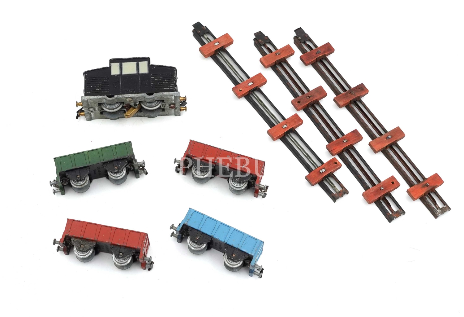 Almanya üretimi Löhmann&Co marka metal oyuncak tren seti, tren: 4x8 cm