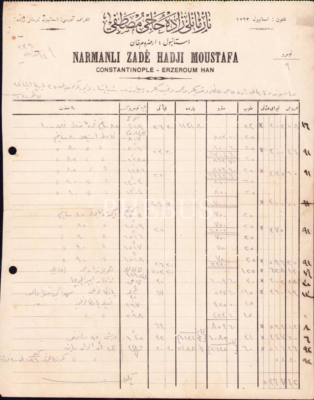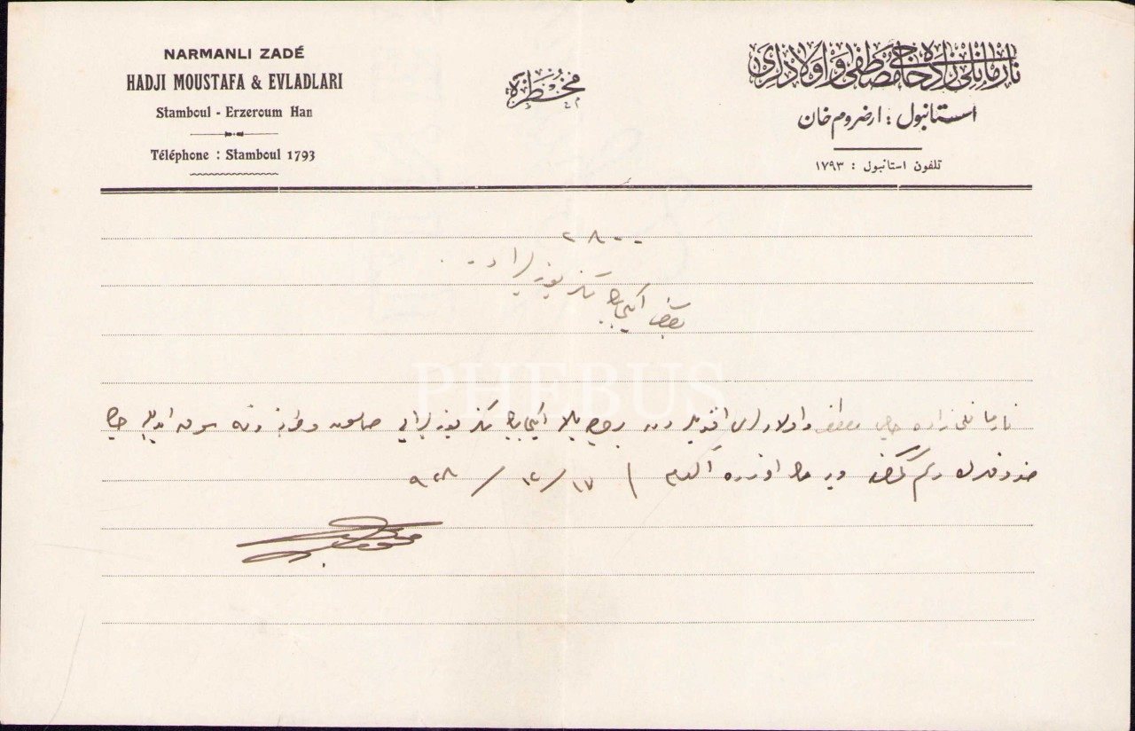Narmanlızade Hacı Mustafa ve Evladları şirketine ait Osmanlıca fatura ve ve makbuz, Constantinople/İstanbul 1339/1923 ve 1928 tarihli, 21x27 cm ve 15x23 cm