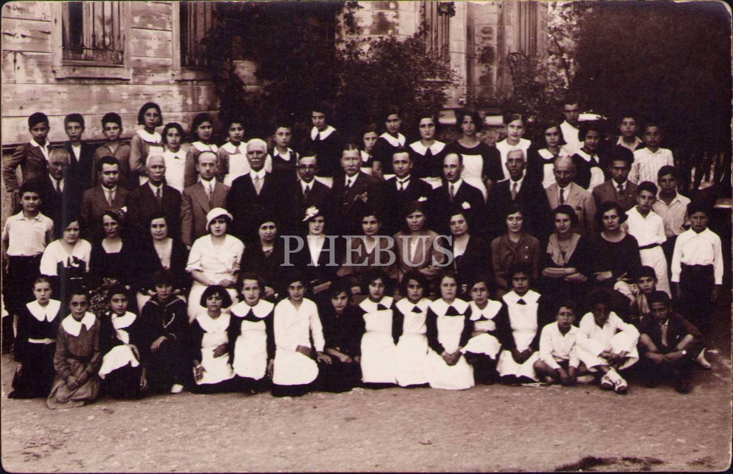Öğretmen ve öğrencilerin toplu hatıra fotoğrafı, kenarları hafif soyulmuş haliyle