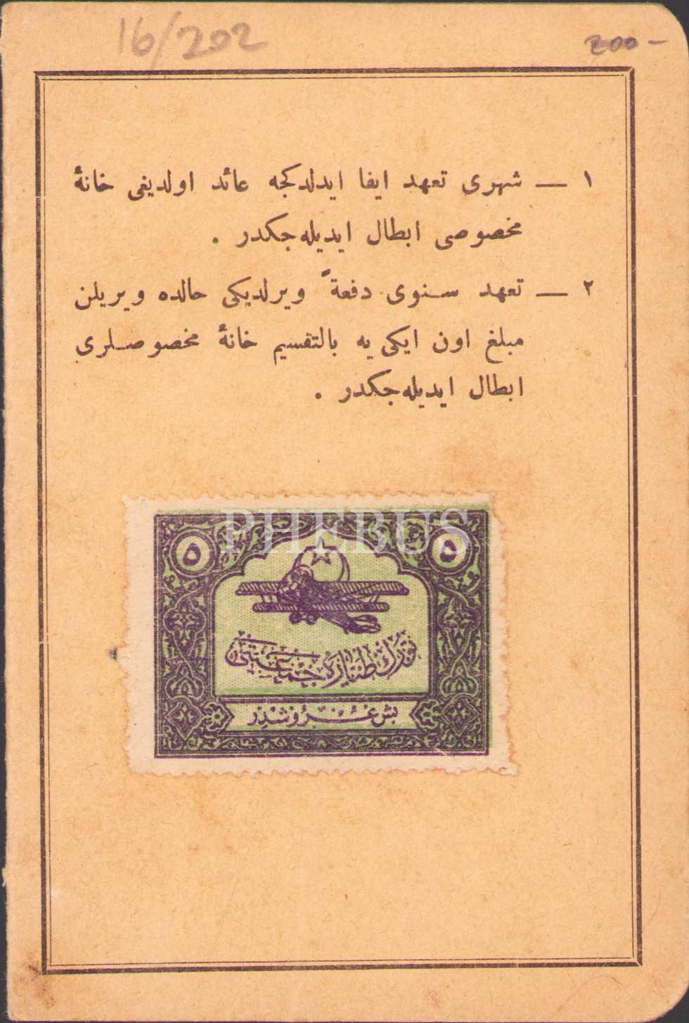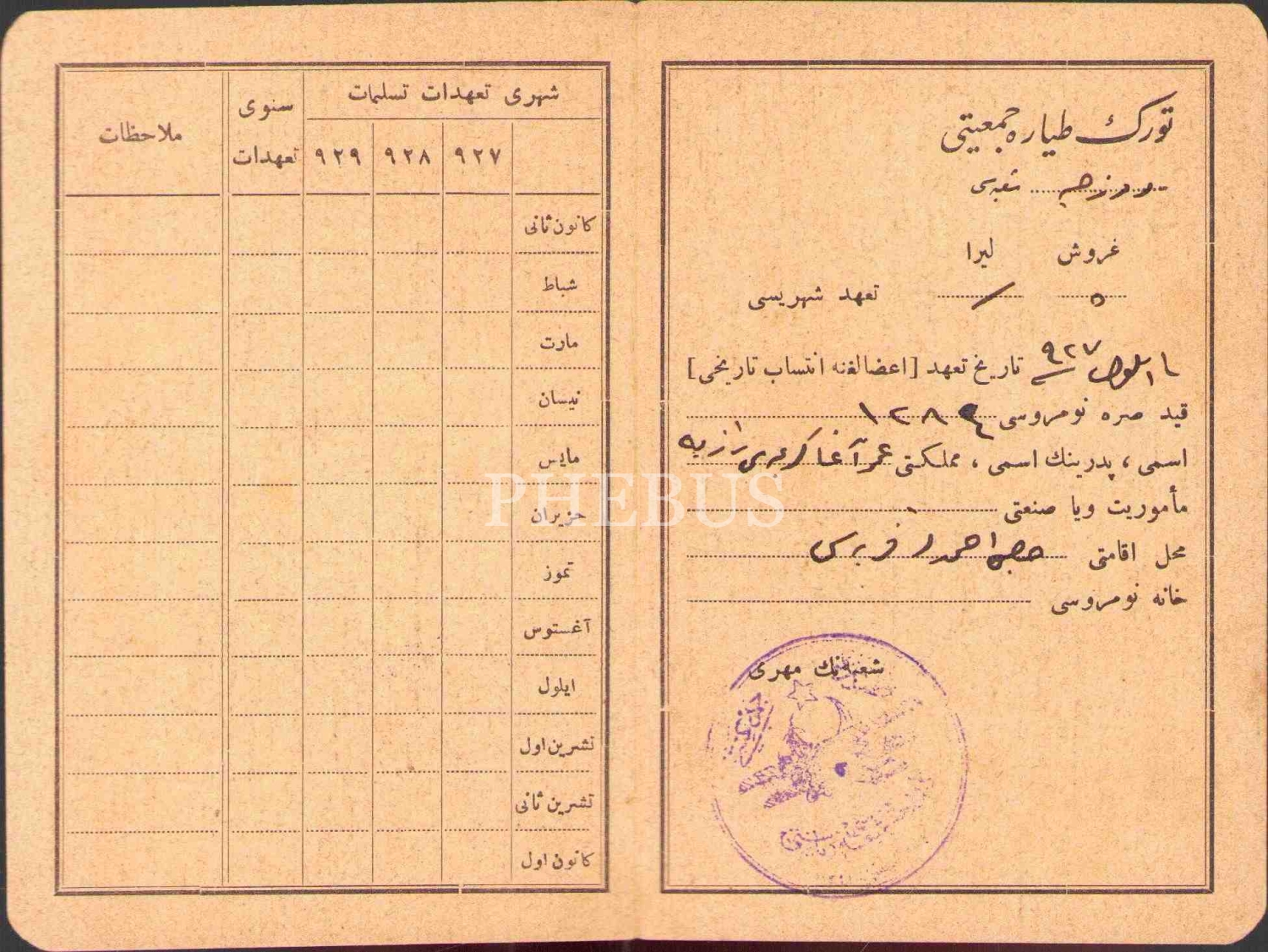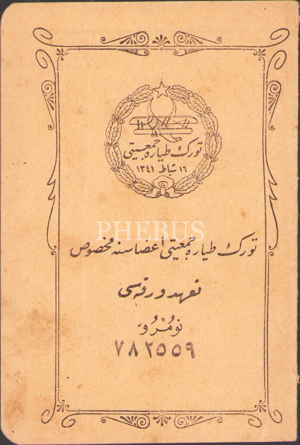 Osmanlıca Türk Tayyare Cemiyeti üye taahhüt kimliği, 1927 tarihli, 8x12 cm