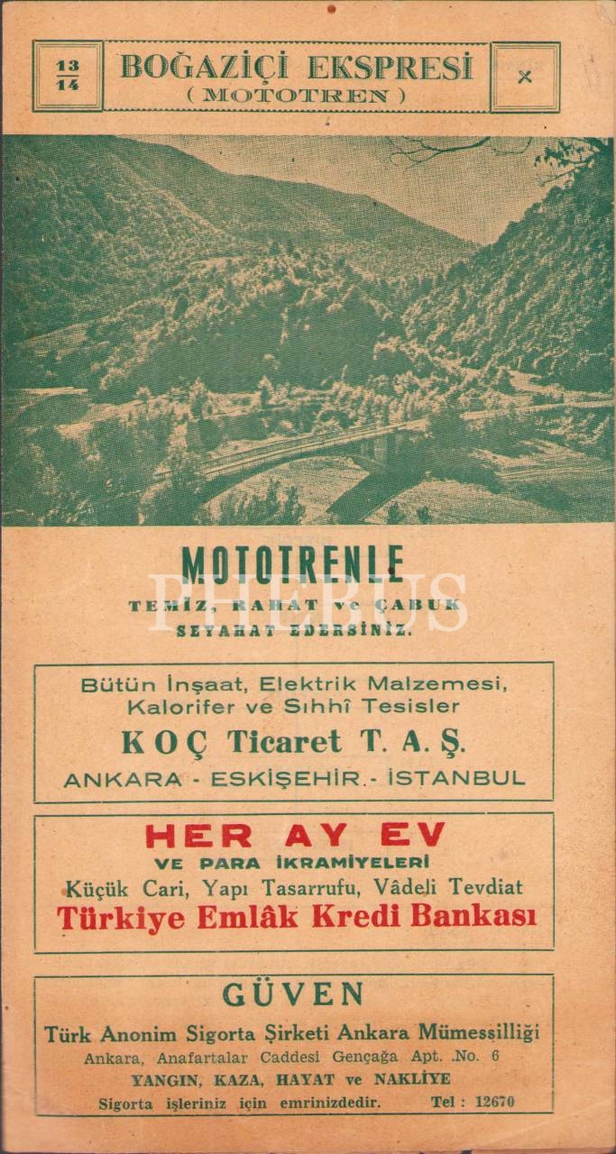 Boğaziçi Ekspresi (Motoren) tanıtım broşürü, 12x23 cm, üst kenarı hafif yırtık haliyle