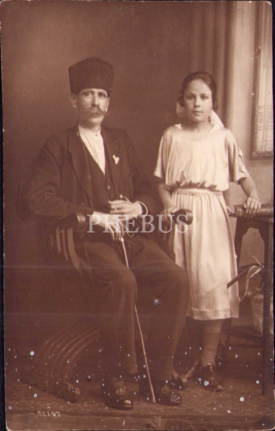 Kalpaklı beyefendi ile kız çocuğunun hatıra fotoğrafı, arkasında 1339 tarihli Osmanlıca mektup mevcut, hafif yıpranmış haliyle