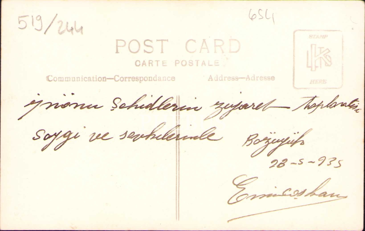 İnönü Şehitliği'ni ziyaret hatırası, Bozüyük/Bilecik 1935, üst köşesi kırık haliyle