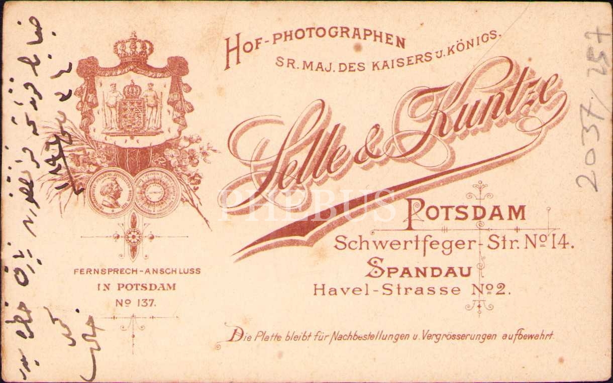 Şık giyimli iki beyefendinin 1896 tarihli Frankfurt ziyareti hatırası, Selle&Kuntze Fotoğrafhanesi-Potsdam/Almanya, Osmanlıca ithaflı, 6x10 cm