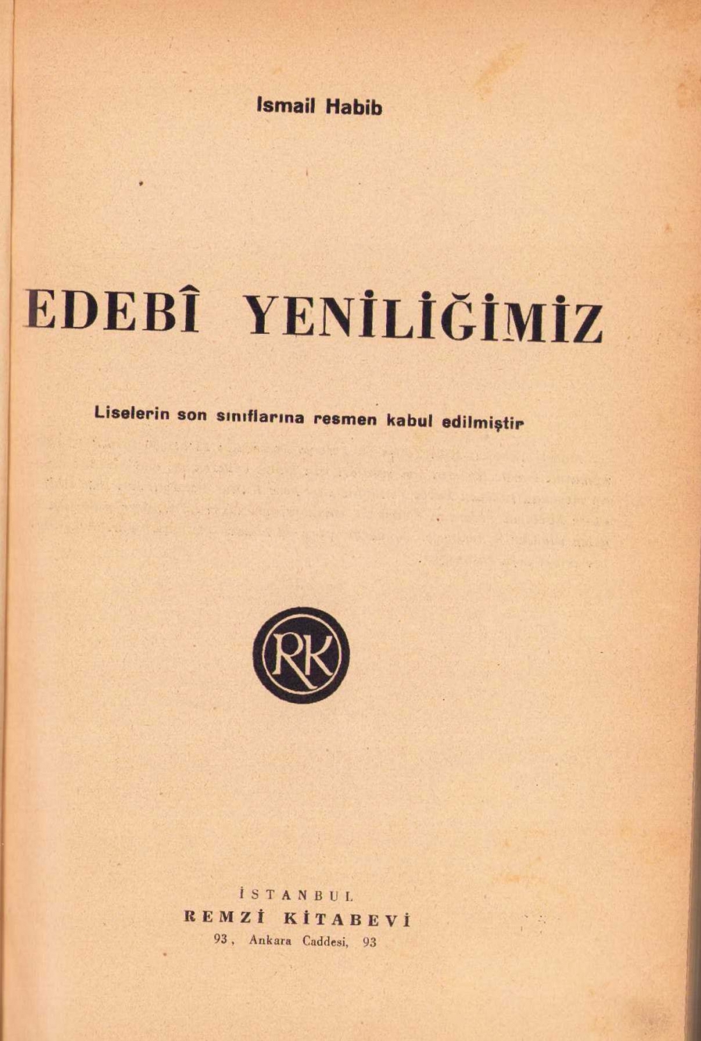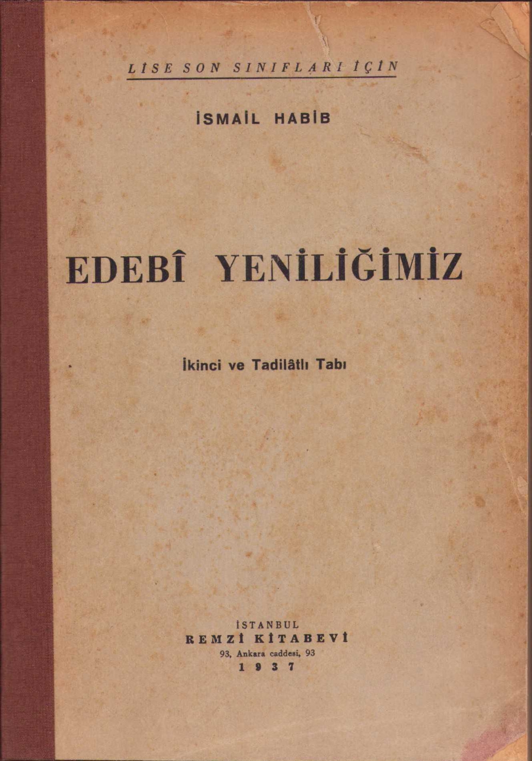 Edebi Yeniliğimiz, İsmail Habib, İkinci ve tadilatlı baskı, İstanbul, 1937, 582 sayfa, 16x24cm
