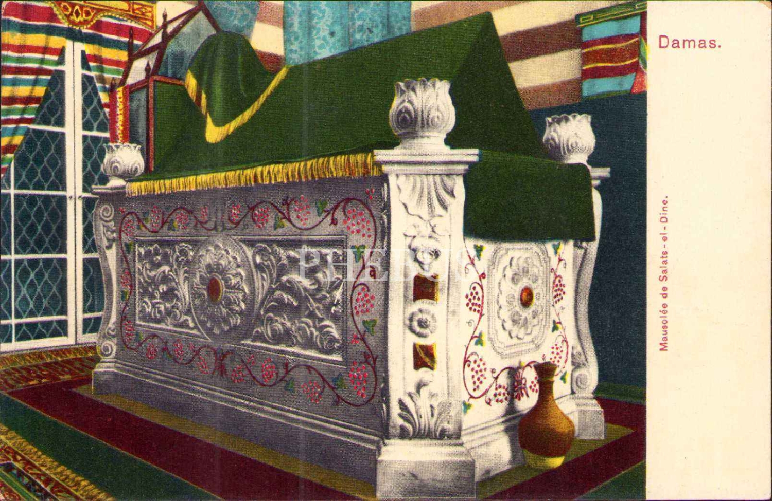 Şam'da Salahaddin Eyyubi mozolesi, Dimitri Tarazi&fils Beyrut-Şam-Kudüs, köşeleri hafif soyulmuş haliyle