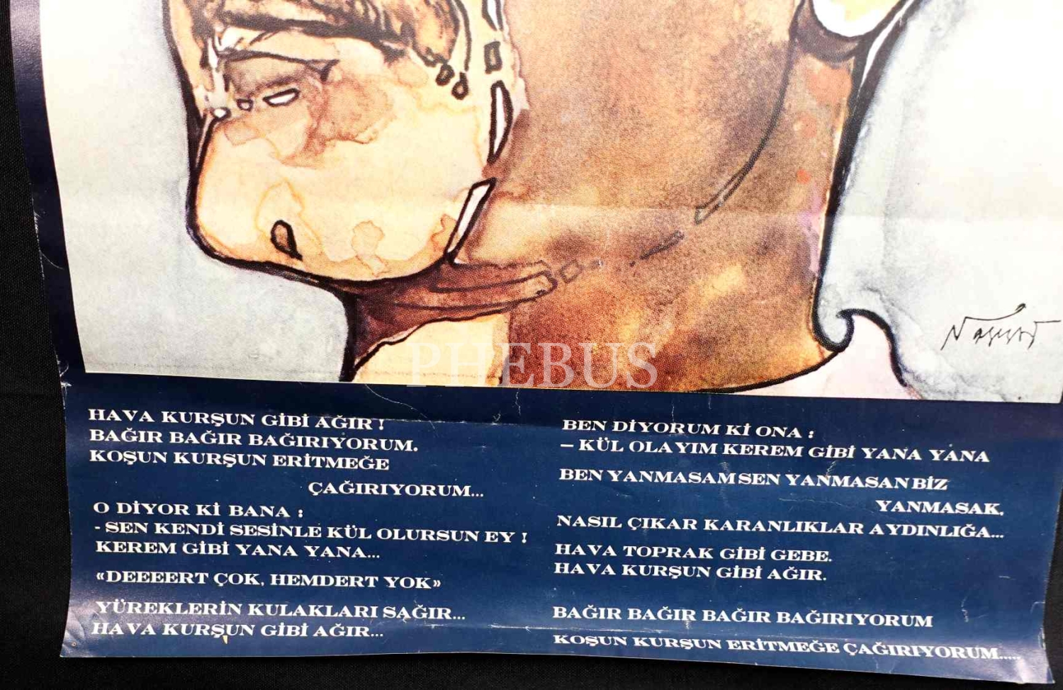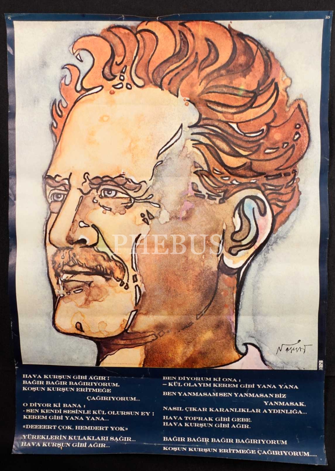 Nazım Hikmet çizimi ile şairin "Kerem Gibi" şiirinin yer aldığı poster, 44x63 cm