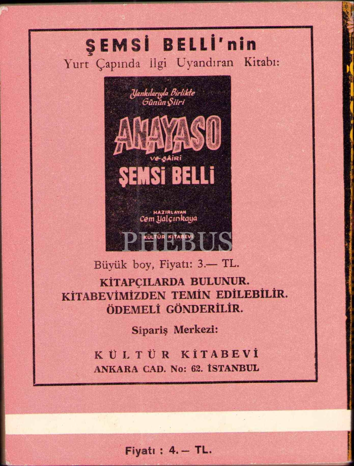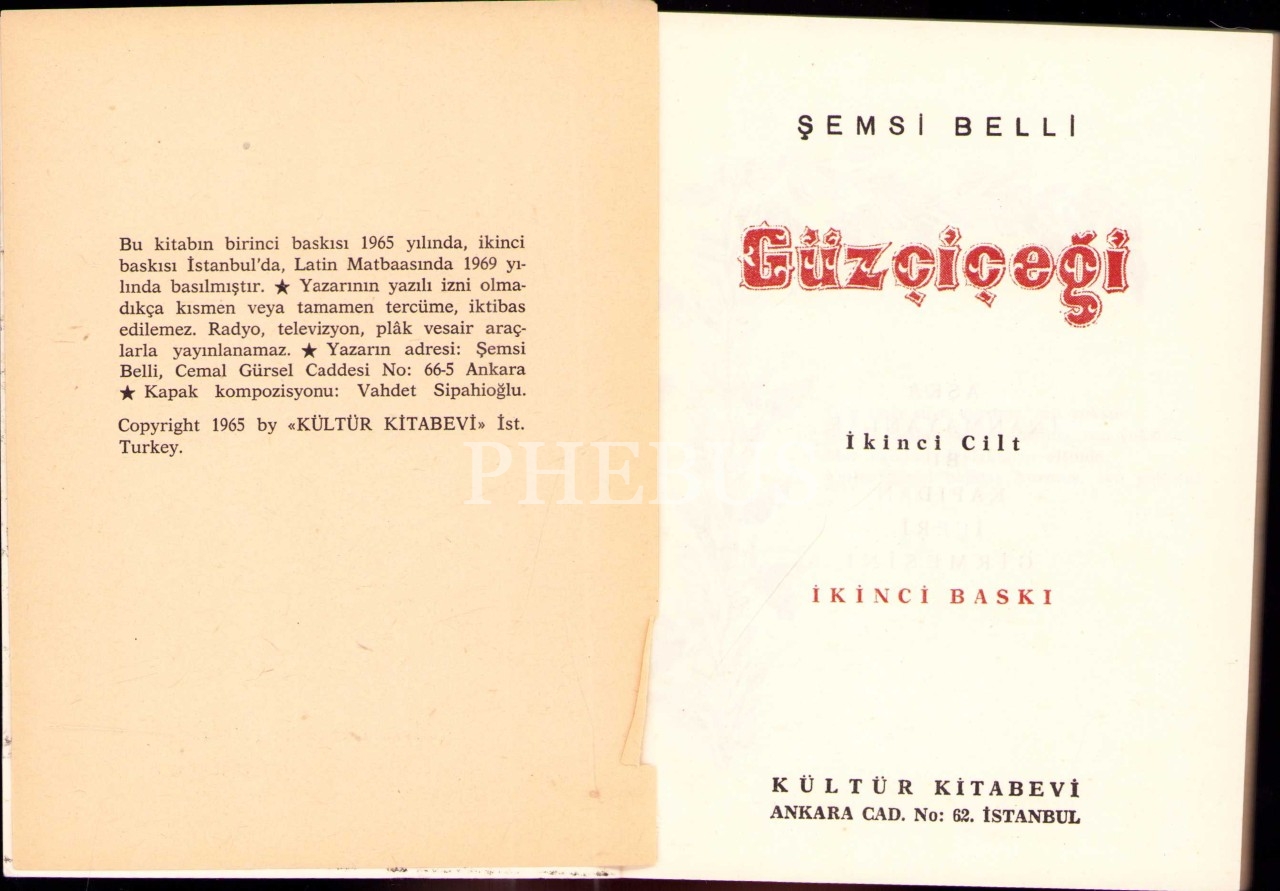 Güzçiçeği-2. Cilt, Şemsi Belli, yazarından ithaf ve imzalı, Kültür Kitabevi, İstanbul 1969, 99 s., 12x15 cm, cildi yorgun ve bir sayfası ayrık haliyle