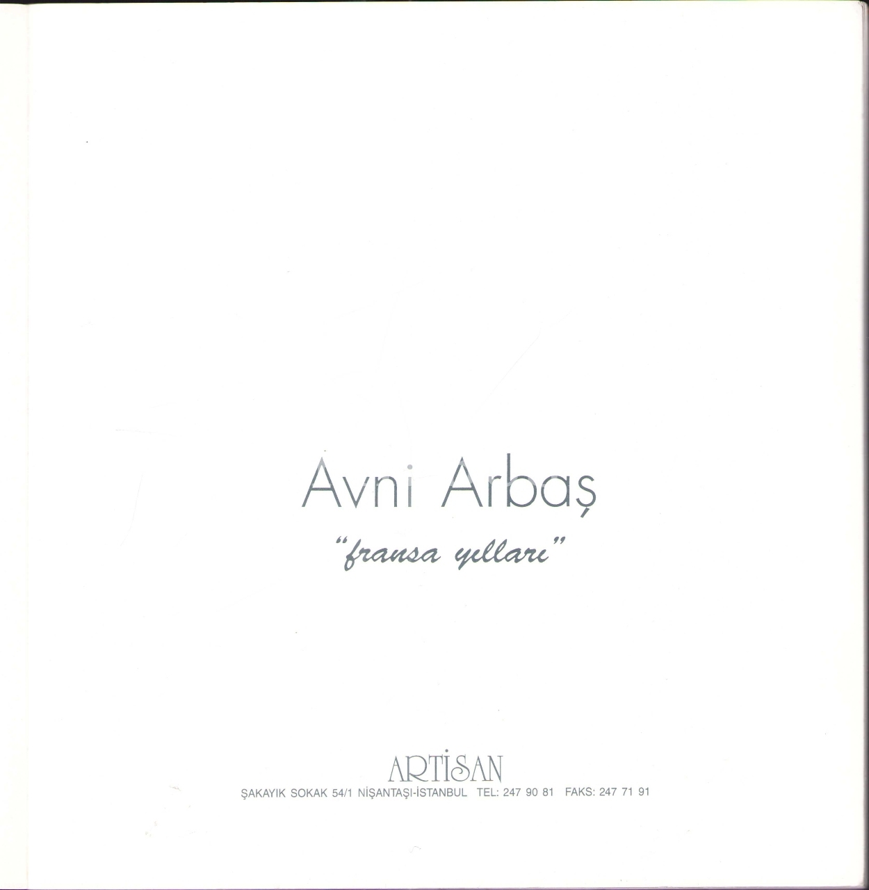 30 Kasım - 5 Aralık '99 tarihleri arasında İstanbul Sanat Fuarı ve 7-31 Aralık '99 tarihleri arasında ARTİSAN Sanat Galerisinde açılan Avni Arbaş "Fransa Yılları" sergisi dolayısı ile Ankara Meteksan A.Ş. Tesislerinde 500 adet basılan katalogdur. Kapak fotoğrafı Ara Güler tarafından çekilmiştir.