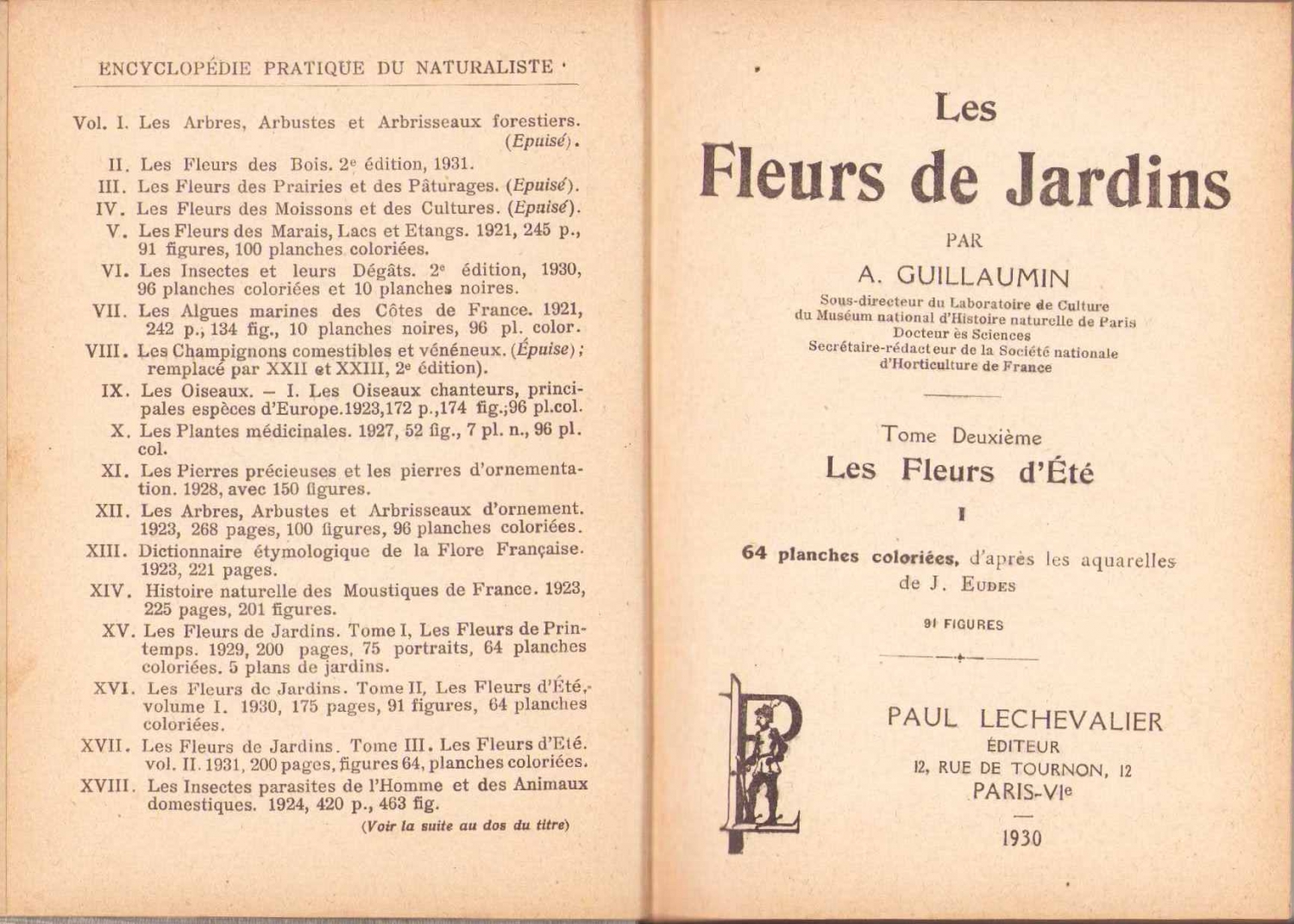 Encyclopedie Pratique Du Naturaliste XVI. Les Fleurs de Jardins No.64 , A. Guillaumin, Paris, 1930, Fransızca, 81 sayfa, 11x16cm