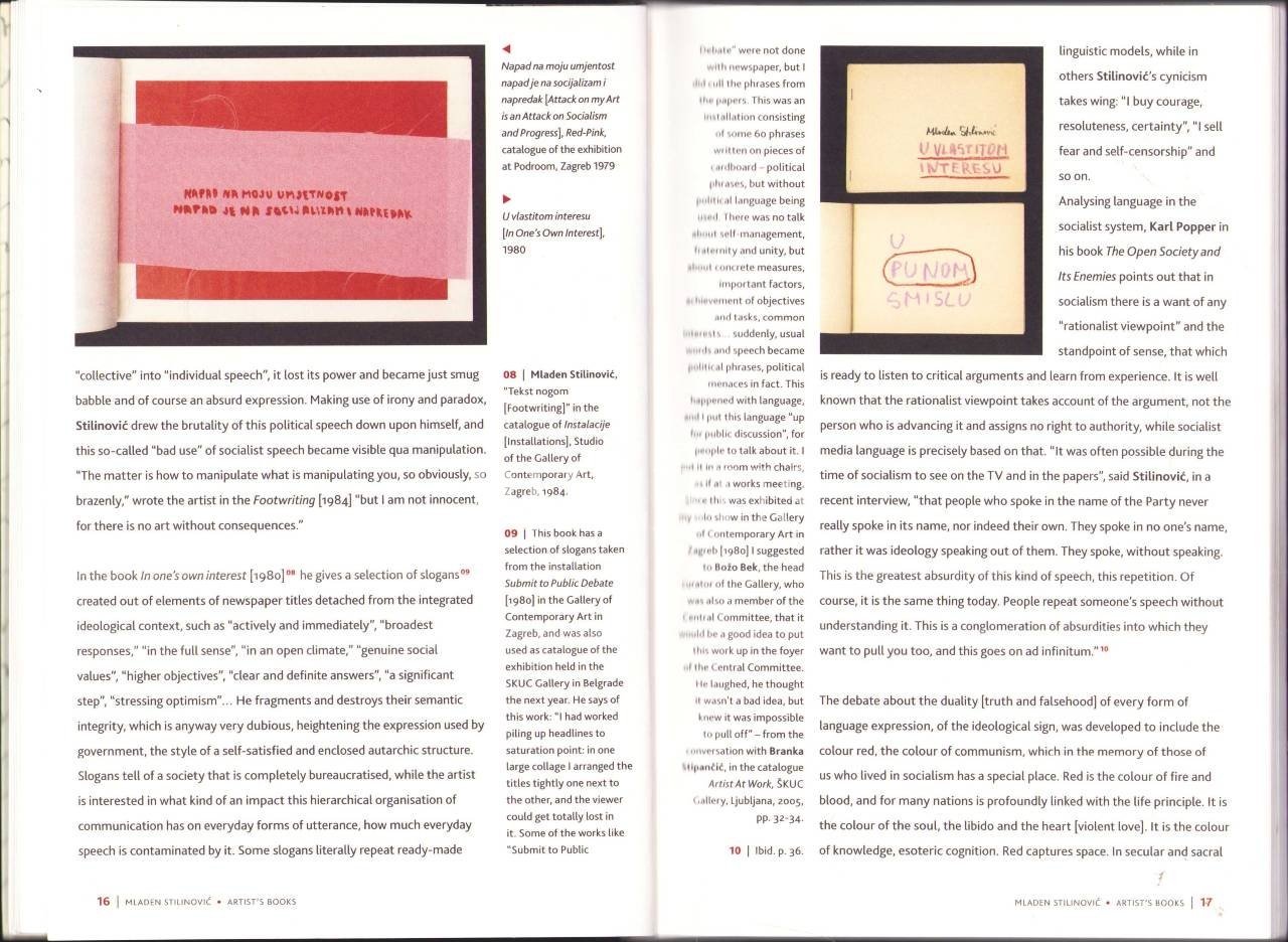 Mladen Stilinovic'ten ithaflı ve imzalı "Artist's Books 1972-2006", Platform Garanti Contemporary Art Center, İstanbul - 2007, 143 sayfa, 16x24 cm