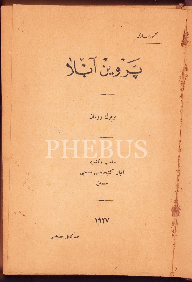 Osmanlıca Pervin Abla (Büyük Roman), Mahmud Yesari, Ahmed Kâmil Matbaası, 1927, 430 s., 15x23 cm, cildi hafif yıpranmış ve künye sayfası ayrık haliyle