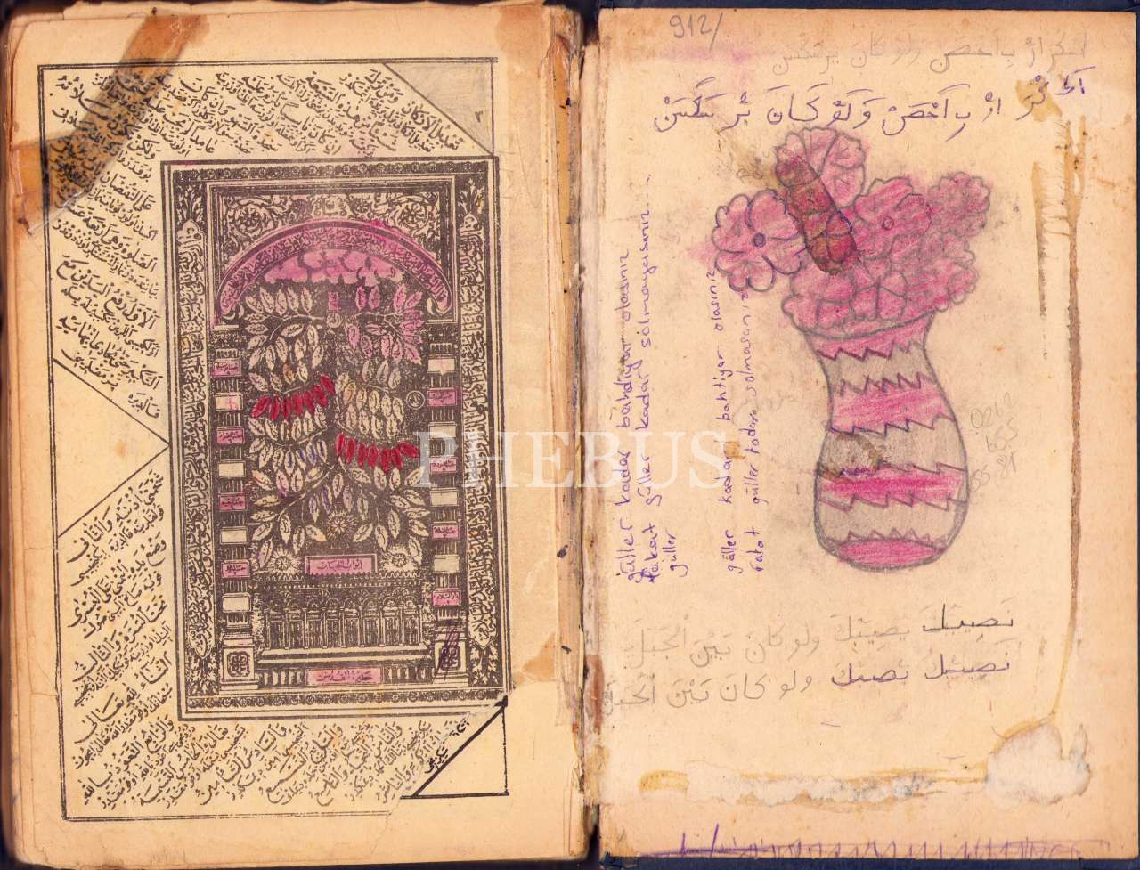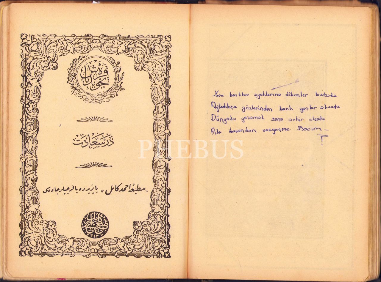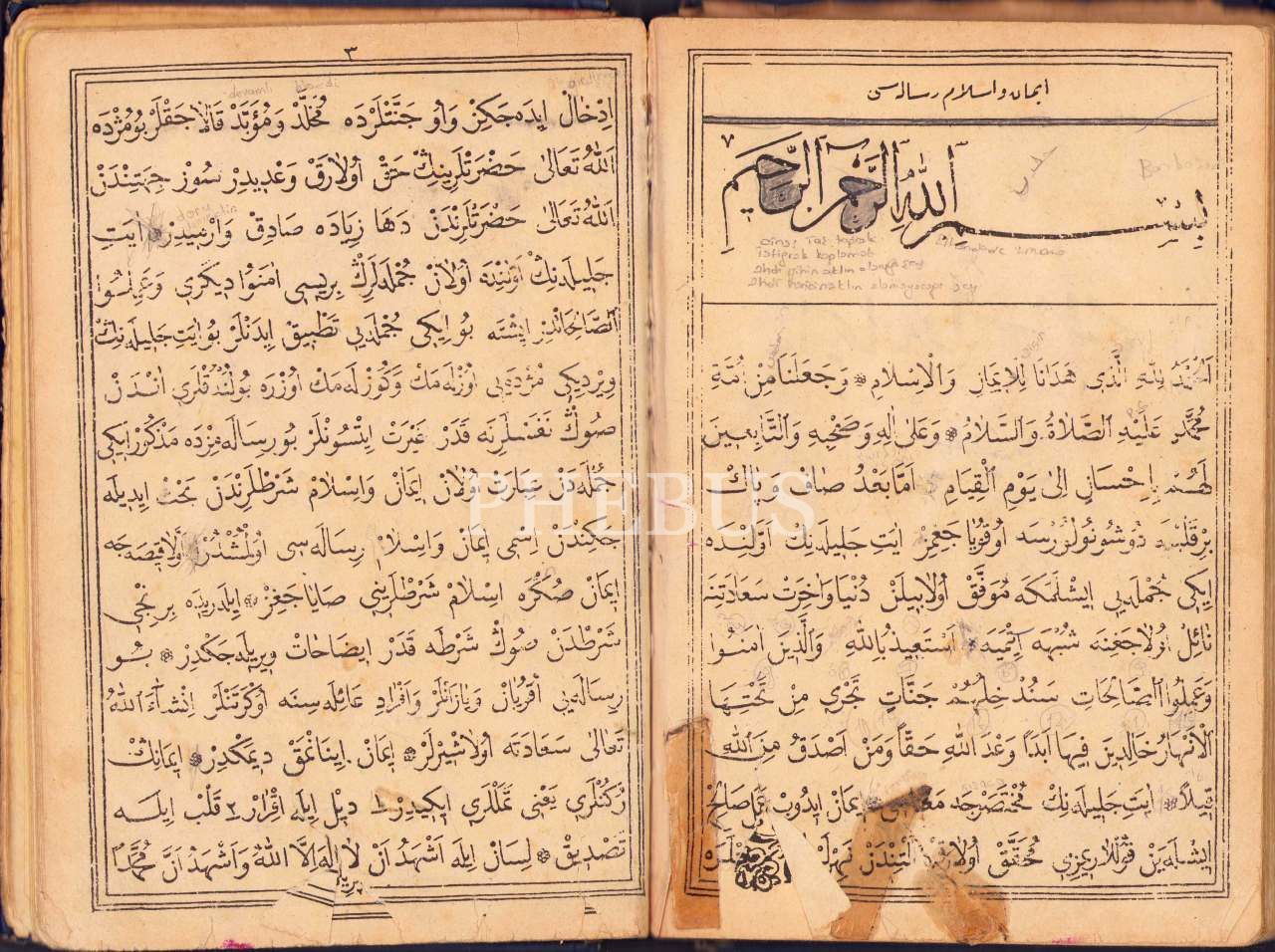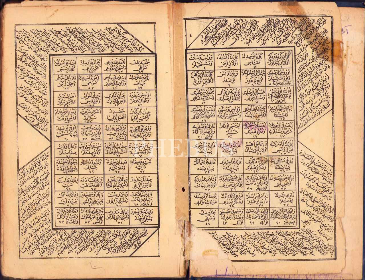Osmanlıca Mızraklı İlmihâl-Karabaş Tecvidi-Îmân ve İslâm Risâlesi-Ömer en-Nesefi'nin Arapça Akaid Metni, Osmaniye ve Ahmed Kamil Matbaası, 1312, 123+15+15+15 s., 16x24 cm, cildi ve bazı sayfaları yıpranmış haliyle