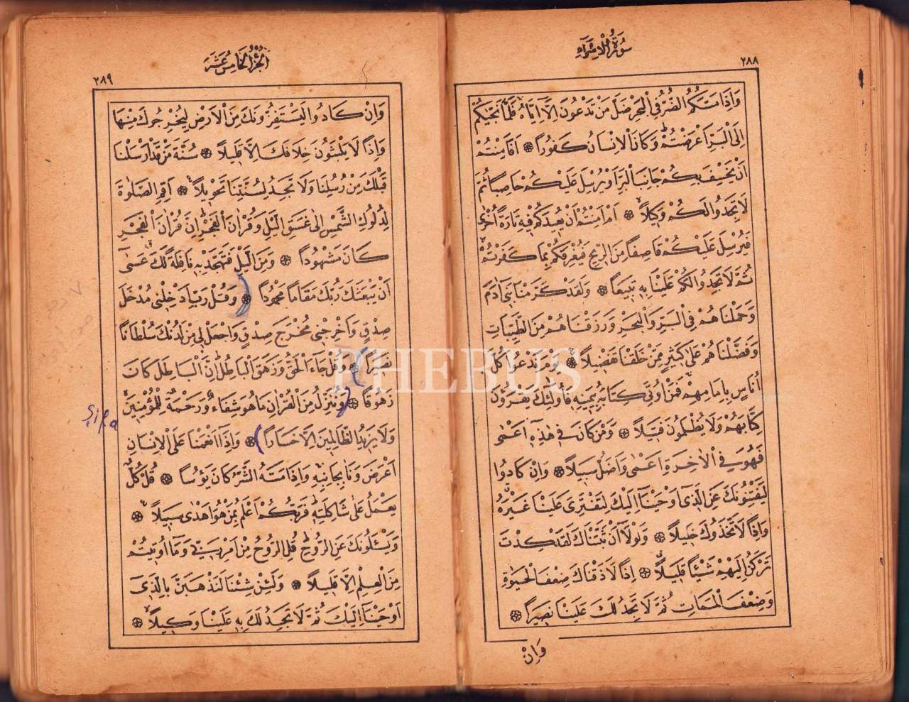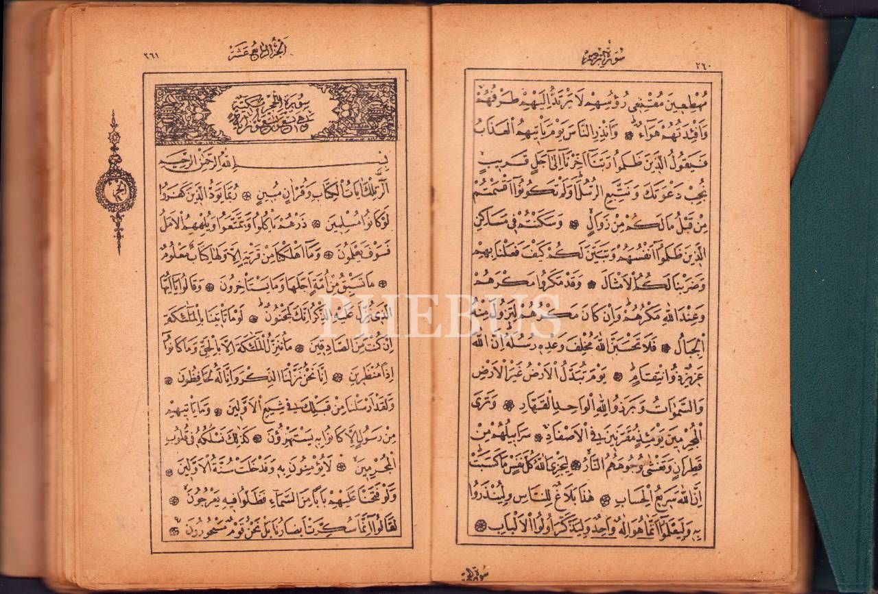 Matbu Kur'ân-ı Kerîm, Hulusi Efendi Matbaası, 1329, 12x18 cm, sırtı ayrık haliyle