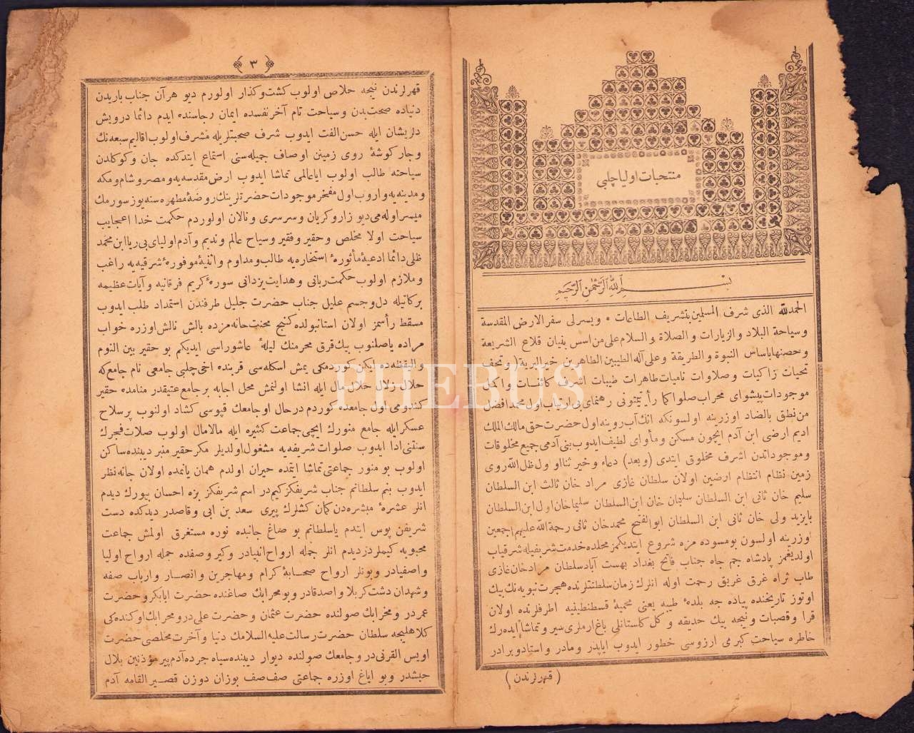 Osmanlıca Müntehabât-ı Evliyâ Çelebi [Seçki], 104 s., 16x23 cm, ciltsiz ve sayfa kenarları yıpranmış haliyle