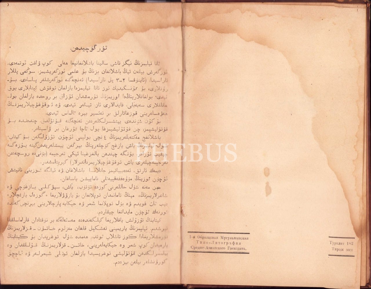 Güzel Yazgıçlar: "Başlangıç mekteblerin 4. bölmeleri üçün tüzülgen [hazırlanan] oku[yu]ş kitabıdır."
