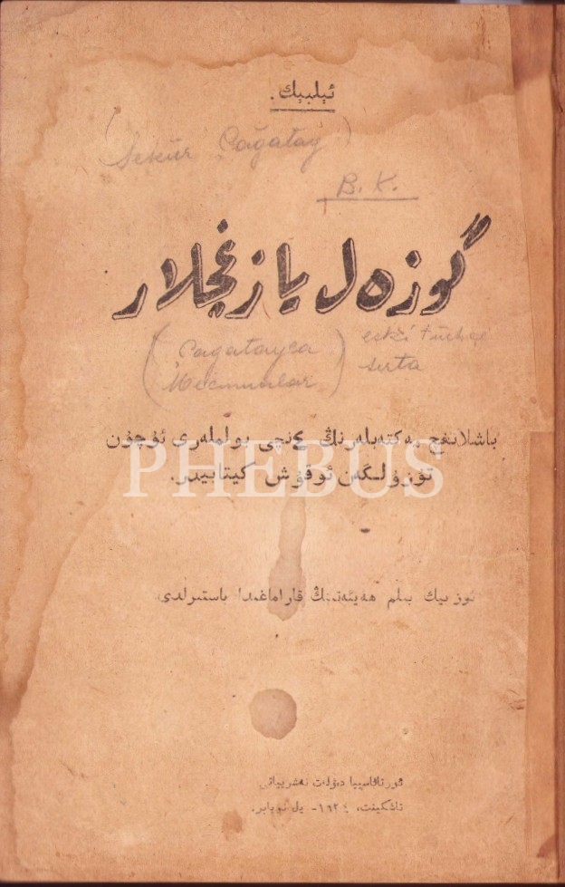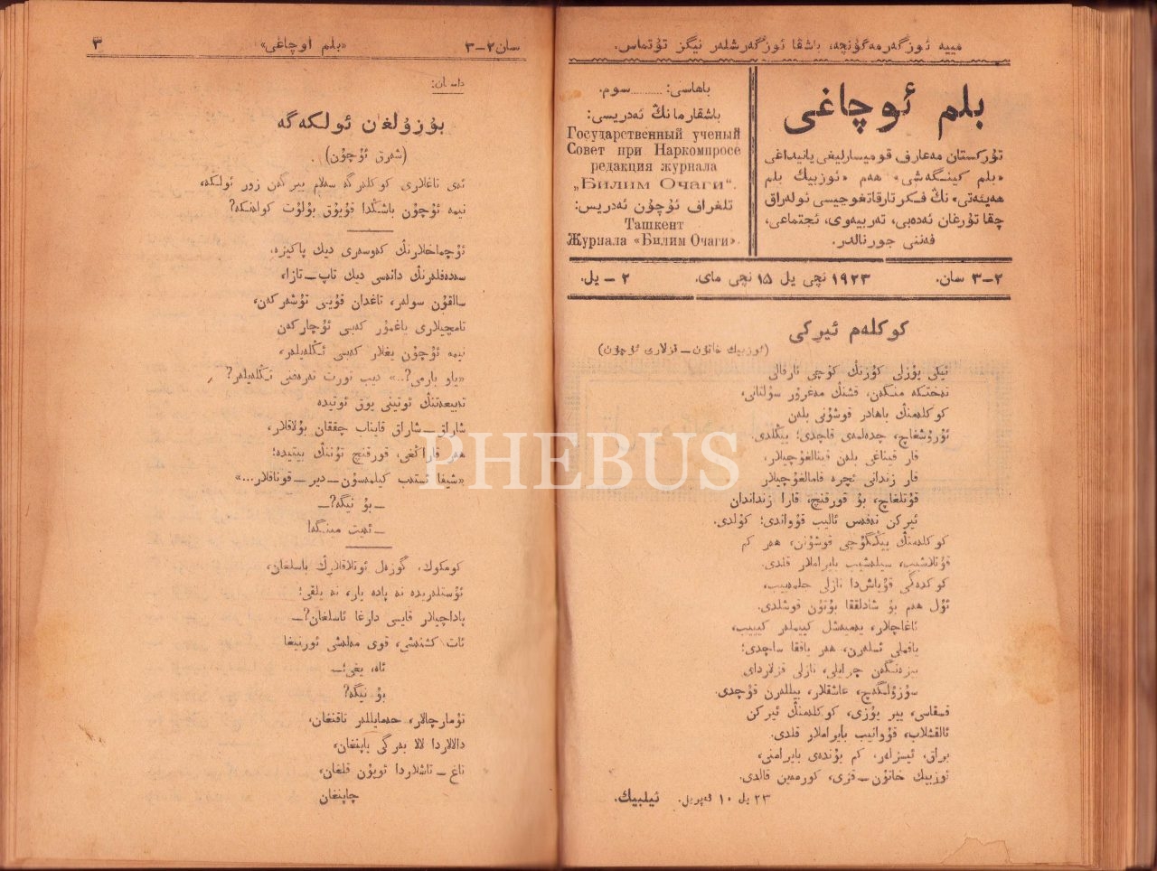 Çağatayca Güzel Yazgıçlar ve Bilim Ocağı dergisi 1-3. sayı, Türkistan Devlet Neşriyatı, Taşkent 1922-1924, 84+112+188 s., 16x25 cm, yorgun ve su almış haliyle