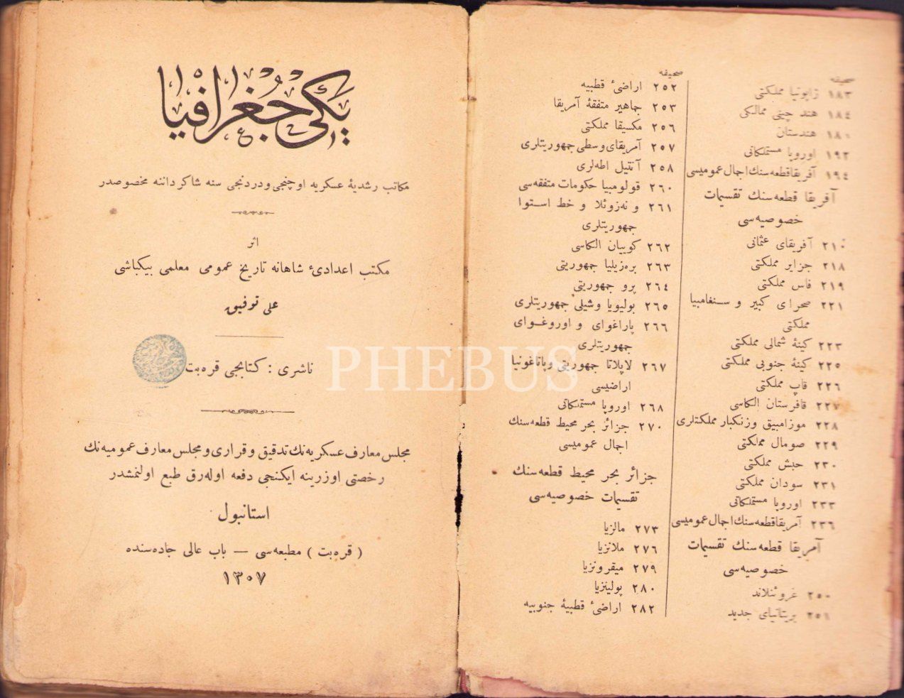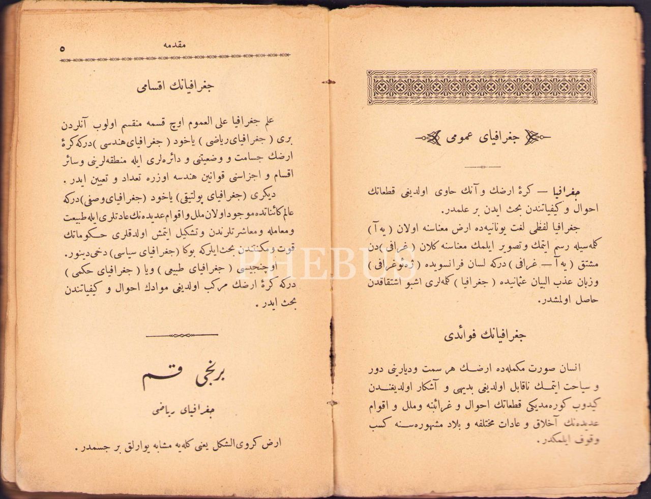 Osmanlıca Yeni Coğrafya, Ali Tevfik, Karabet Matbaası, İstanbul 1307, 283 s., 12x18 cm, cildi yıpranmış haliyle