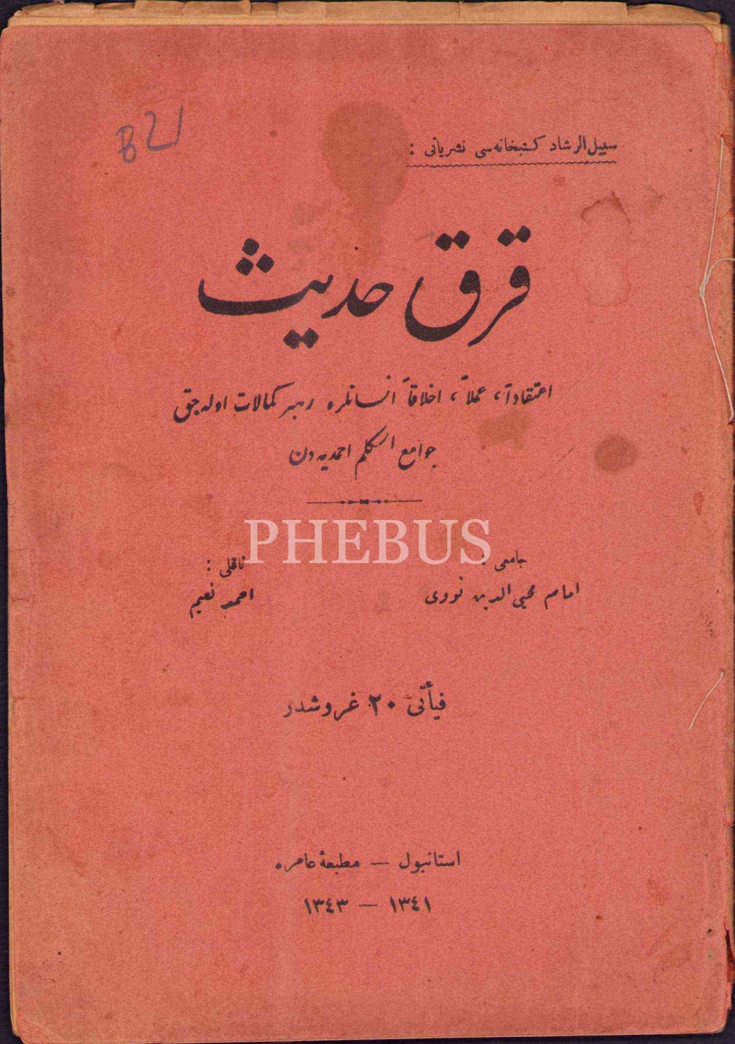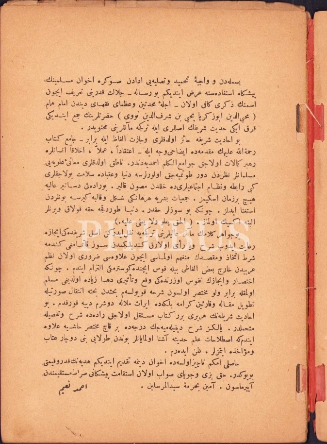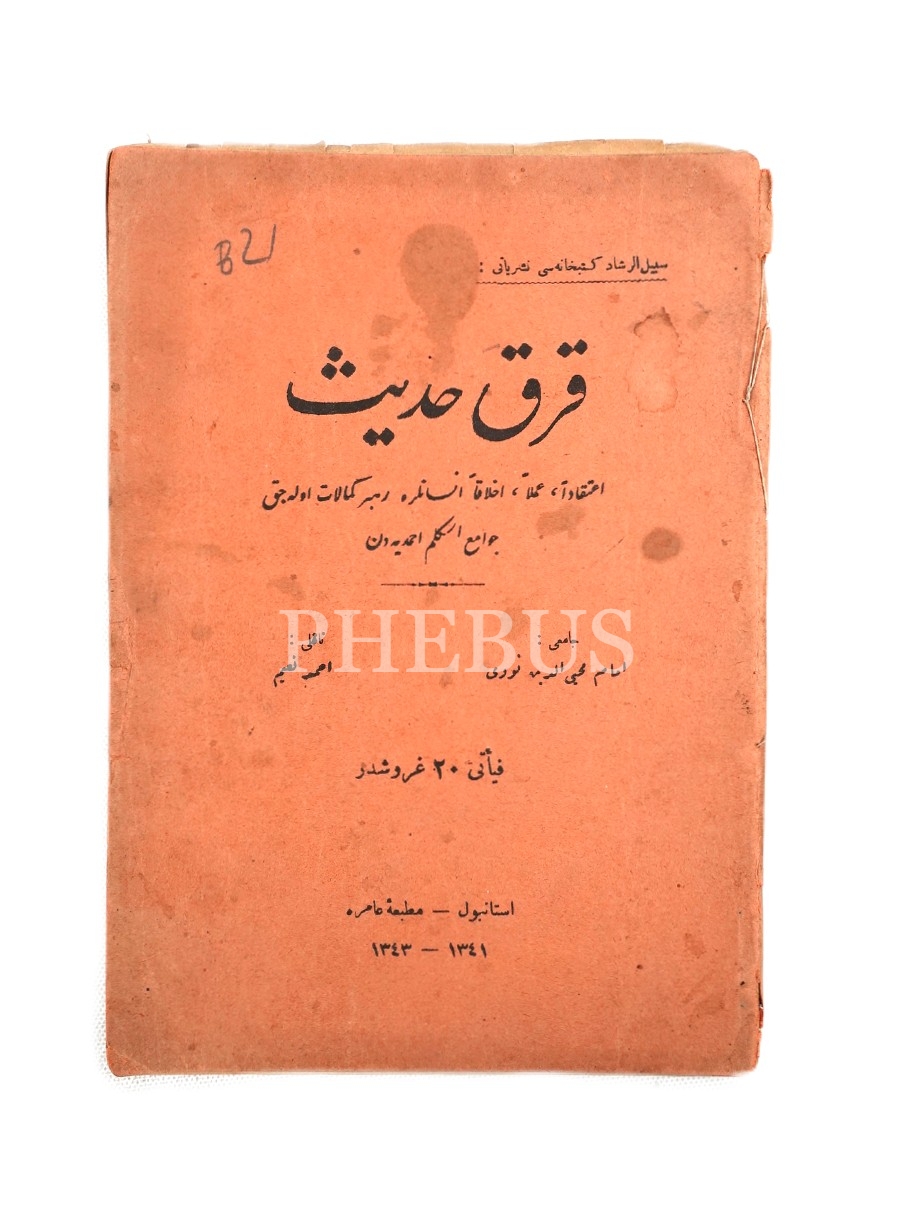 Osmanlıca Kırk Hadîs, derl. İmam Muhyiddin Nuri, çev. Ahmed Naim, Amire Matbaası, İstanbul 1343, 63 s., 14x19 cm, kapağı hafif yıpranmış haliyle