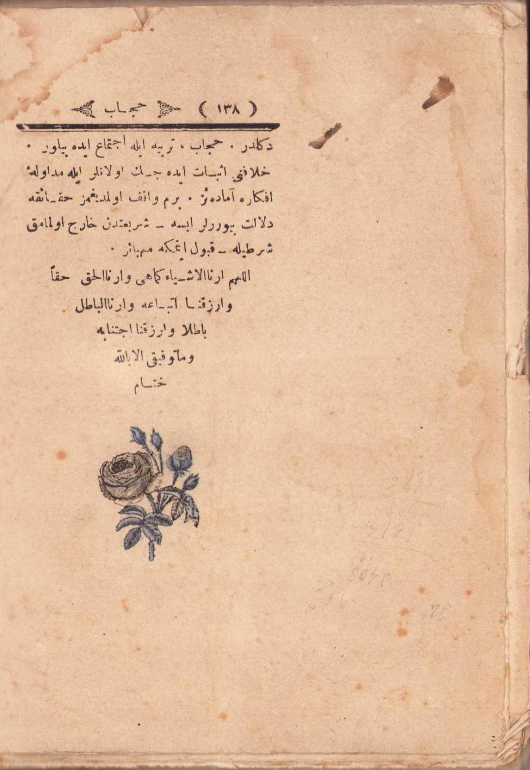 Hicab, sahibi ve naşırı Mustafa Alaeddin, Girit baskısı, 1217, Osmanlıca, yeni cildinde, 138 sayfa, 16x22cm