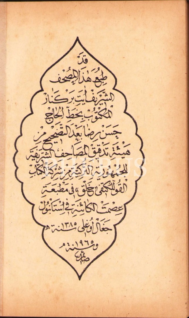 Matbu Kur'ân-ı Kerîm, İsmet Matbaası, İstanbul 1965, 14x20 cm