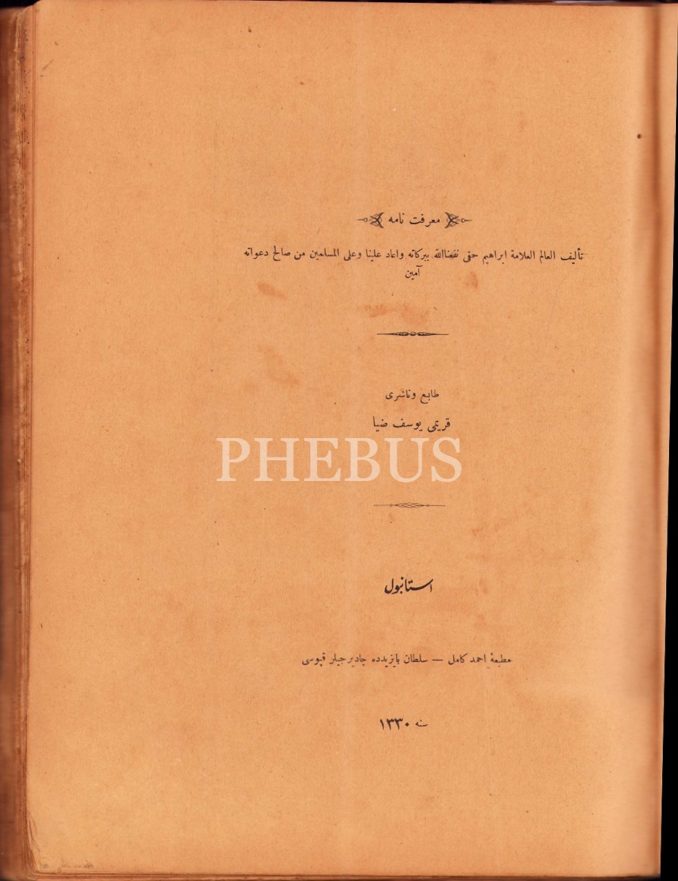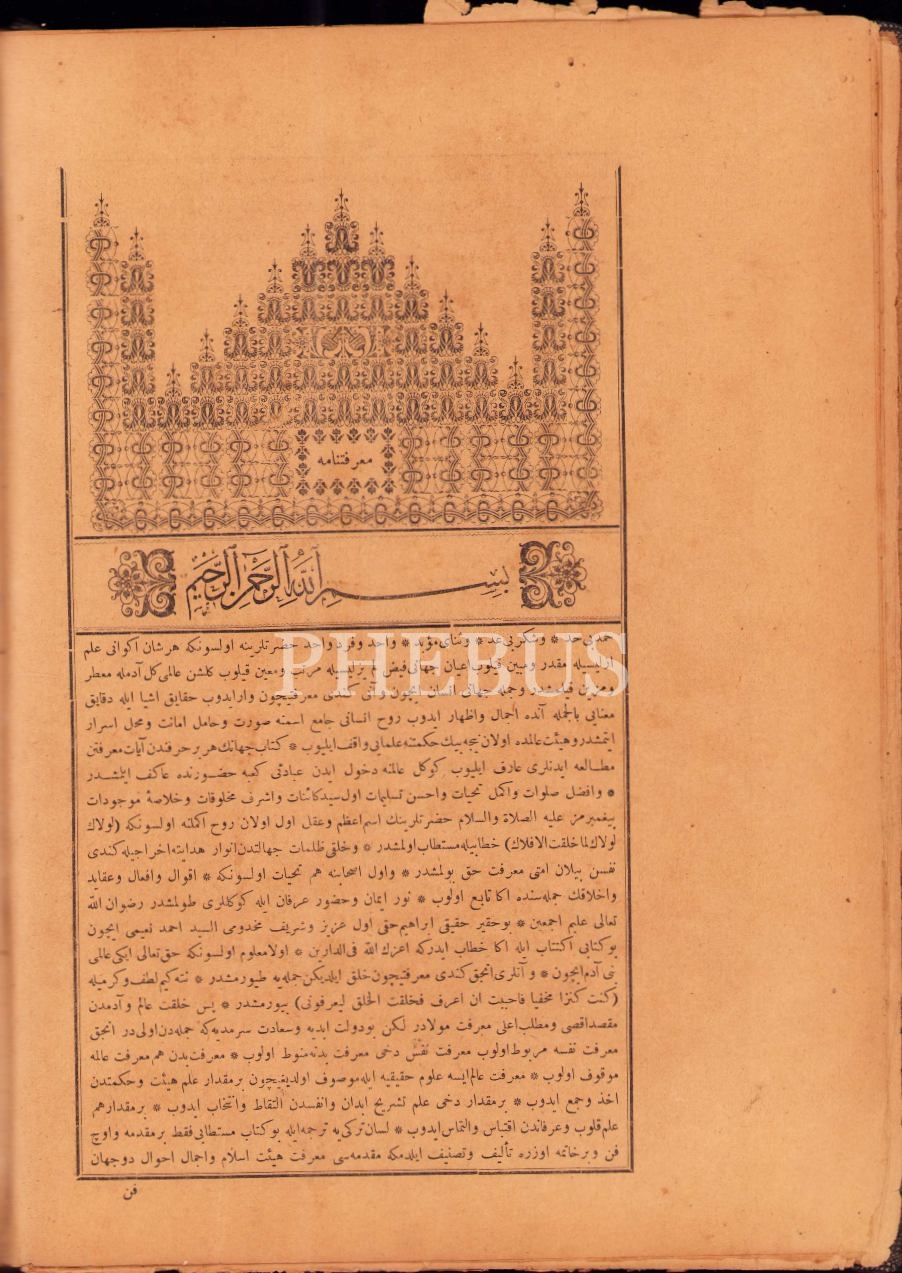 Osmanlıca Marifetnâme, İbrahim Hakkı, Ahmed Kamil Matbaası, İstanbul 1330, 564 s., 24x33 cm, cildi yorgun ve bazı sayfaları yıpranmış haliyle