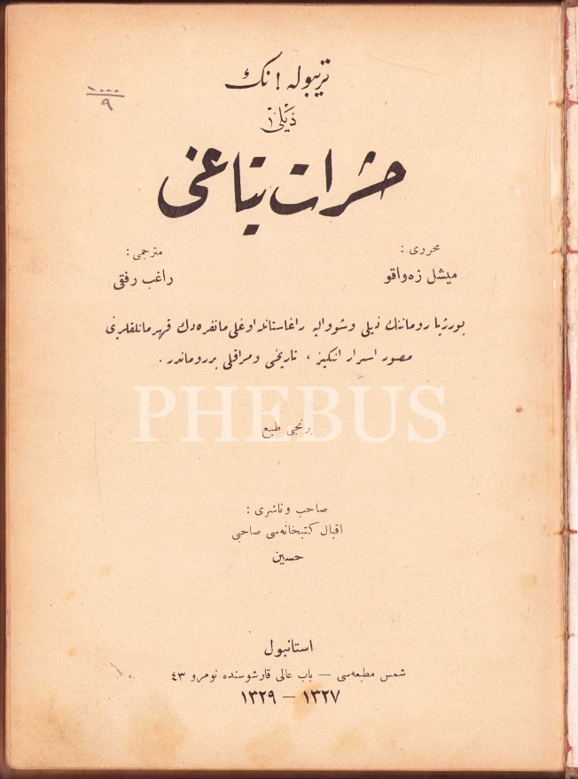 Osmanlıca Tribule'nin Zeyli Haşerât Yatağı, Michel Zevaco, çev. Ragıb Rıfkı, Şems Matbaası, İstanbul 1329, 352 s., 18x24 cm, sırtı ve birkaç sayfası ayrık haliyle