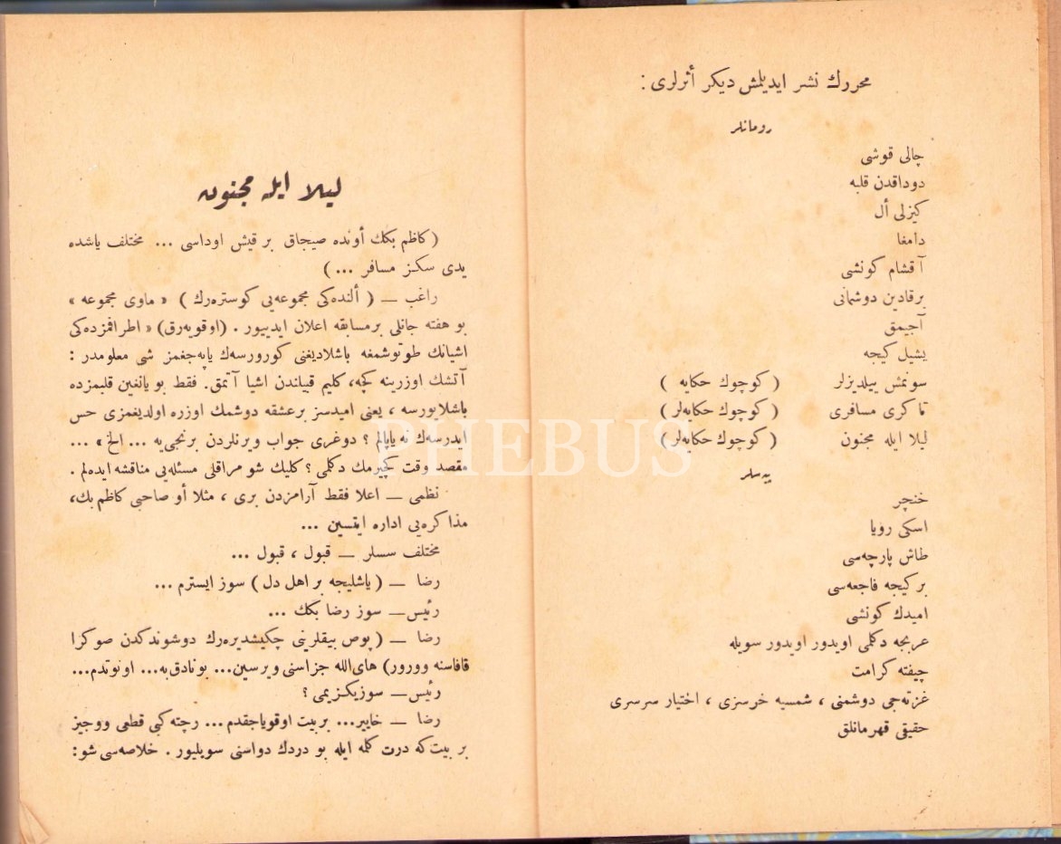 Osmanlıca Leylâ ile Mecnûn, Reşad Nuri [Güntekin], Sühulet Kütübhanesi, İstanbul 1928, 299 s., 14x20 cm