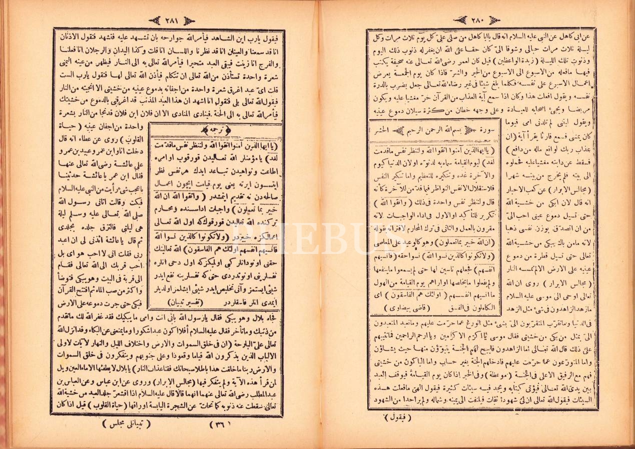 Osmanlıca-Arapça Tibyânlı Meclis-Dürretü'l-Vâizîn, Osman b. Hasan el-Hobevî, Osmaniye Matbaası, Dersaadet [İstanbul] 1313, 329 s., 17x24 cm, cildi hafif yıpranmış haliyle