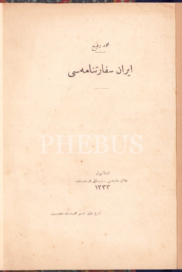 Osmanlıca Îrân Sefâretnâmesi, Mehmed Refi', Hilal Matbaası, İstanbul 1333, 31 s., 17x24 cm