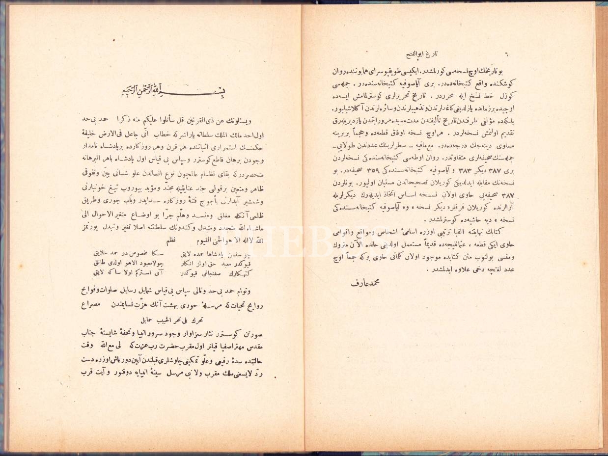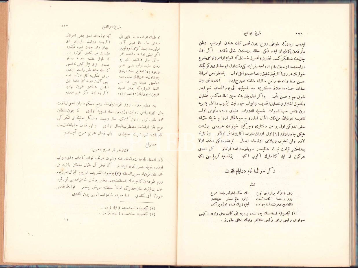 Osmanlıca Târîhu Ebu'l-Feth, Dursun Bey, Ahmed İhsan ve Şürekası Matbaacılık Osmanlı Şirketi, İstanbul 1330, 198 s., 17x25 cm, bazı sayfaları açılmamış haliyle