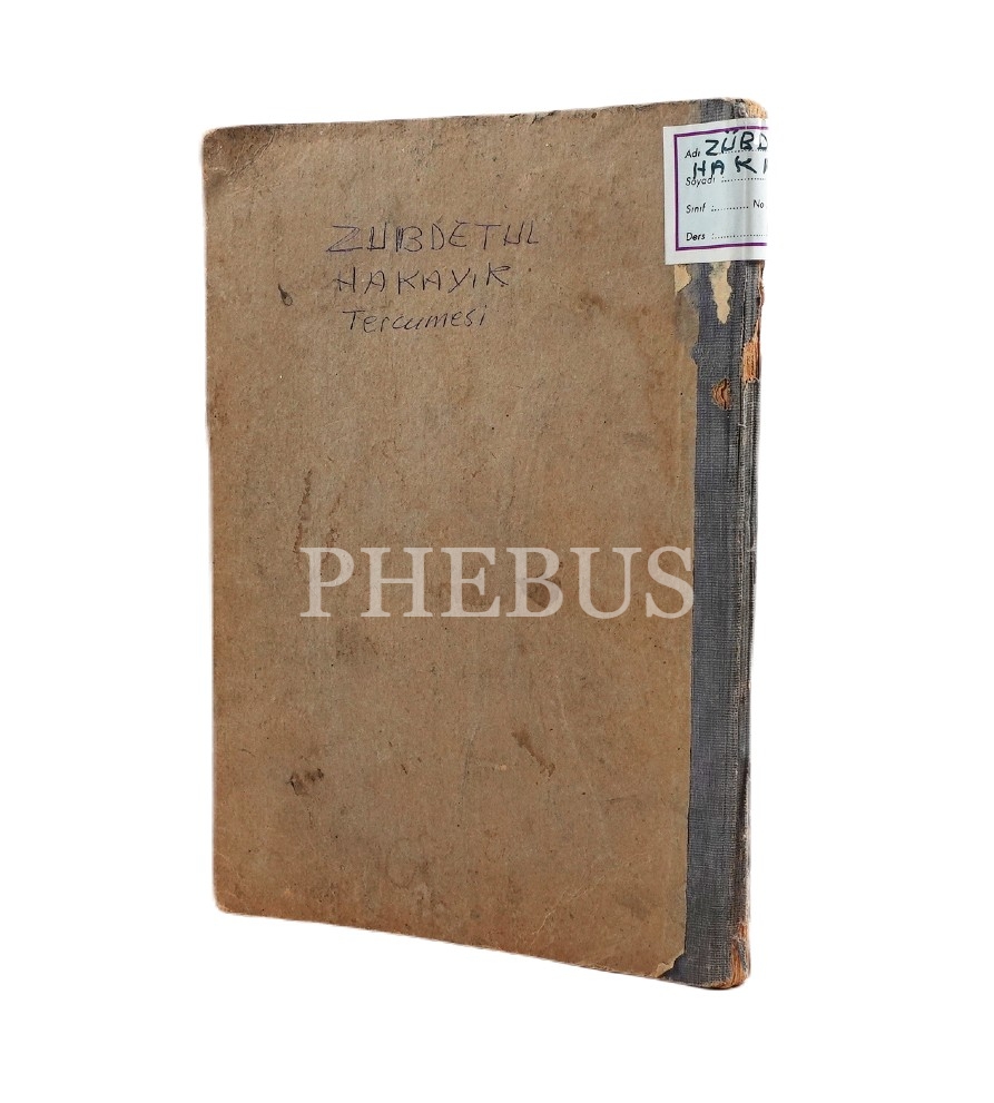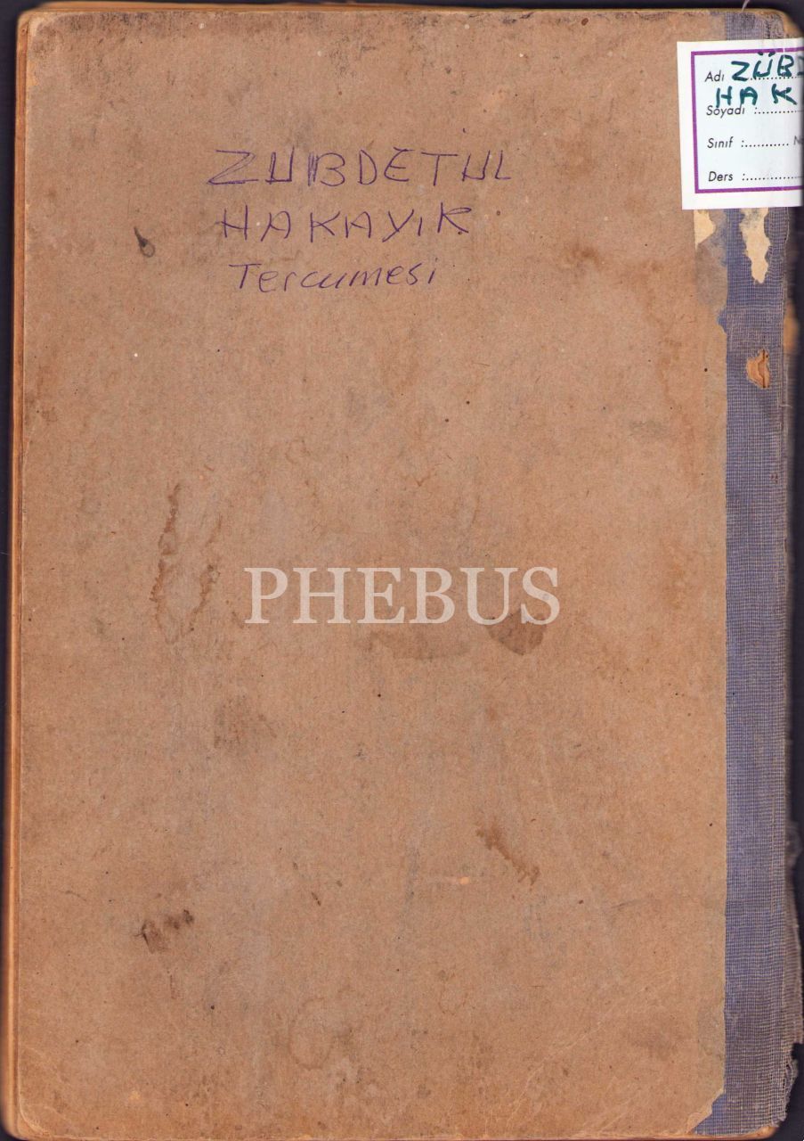 Zübdetü'l-Hakâik [Osmanlıca] Tercümesi Gâyetü'd-Dekâik, çev. Ayıntabî Seyyid Hafız Mehmed Efendi, 1291, 16x24 cm, kapağı hafif yıpranmış haliyle
