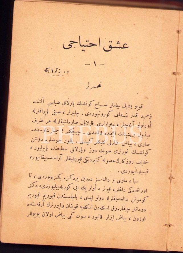 Osmanlıca Aşk İhtiyâcı, Orhan Midhat, Cihan Biraderler Matbaası, 1924, 316 s., 12x18 cm, sırtı ayrık ve cildi yıpranmış haliyle