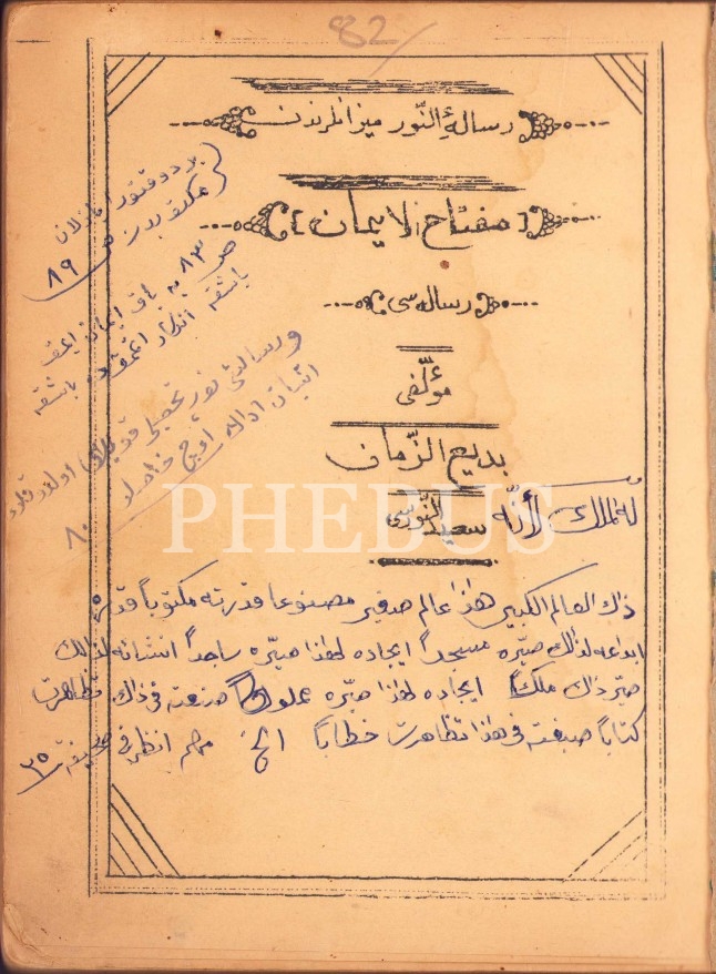 Osmanlıca Risâle-i Nûr Mîzânları'ndan Miftâhu'l-Îmân Risâlesi, Bediüzzaman Said Nursi, teksir baskı, 92 s., 17x21 cm, hafif yıpranmış haliyle