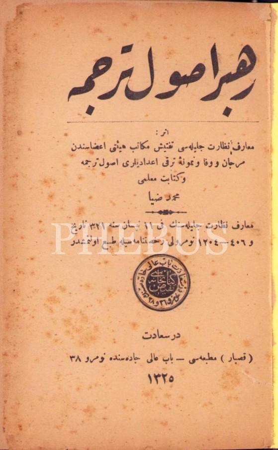 Osmanlıca Rehber-i Usûl-i Tercüme, Mehmed Ziya, Kasbar Matbaası, Dersaadet [İstanbul] 1325, 168 s., 13x19 cm, bir sayfası kısmen yırtık haliyle
