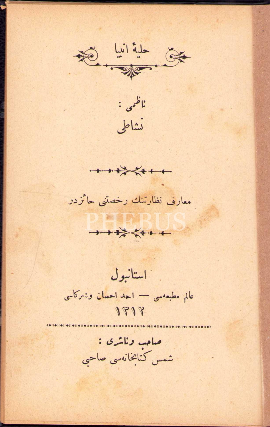 Osmanlıca Hilye-i Enbiyâ, Neşatî, Alim Matbaası, İstanbul 1312, 32 s., 11x17 cm