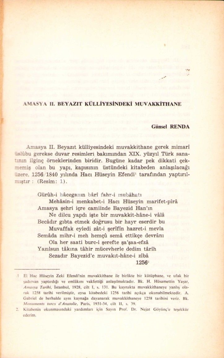 AMASYA II. BEYAZIT KÜLLİYESİNDEKİ MUVAKKİTHANE, Günsel Renda, 1976