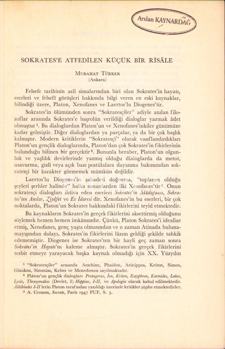 SOKRATES’E ATFEDİLEN KÜÇÜK BİR RİSÂLE, Mubahat Türker (Küyel), 1969