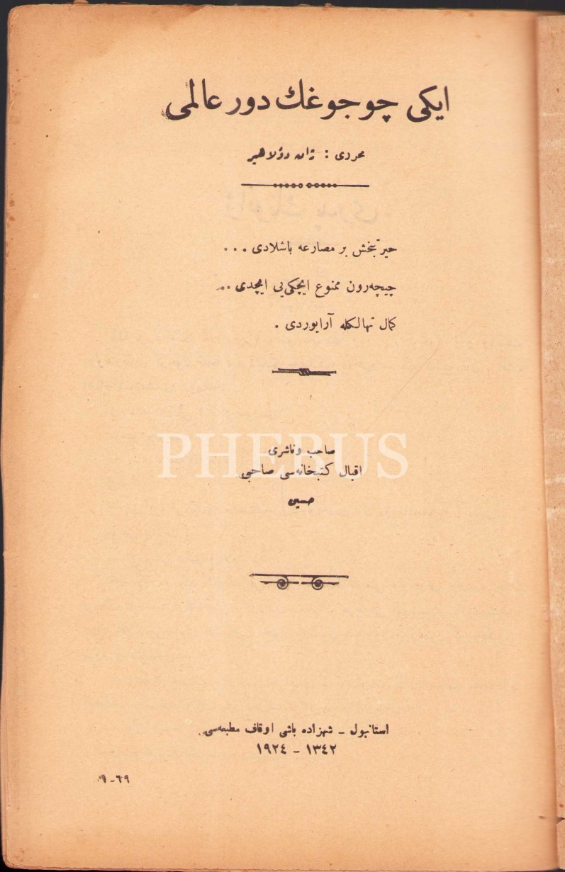 Osmanlıca İki Çocuğun Devr-i Âlemi-69. sayı, Jean de la Hire, Şehzadebaşı Evkaf Matbaası, İstanbul 1924, 30 s., 16x24 cm
