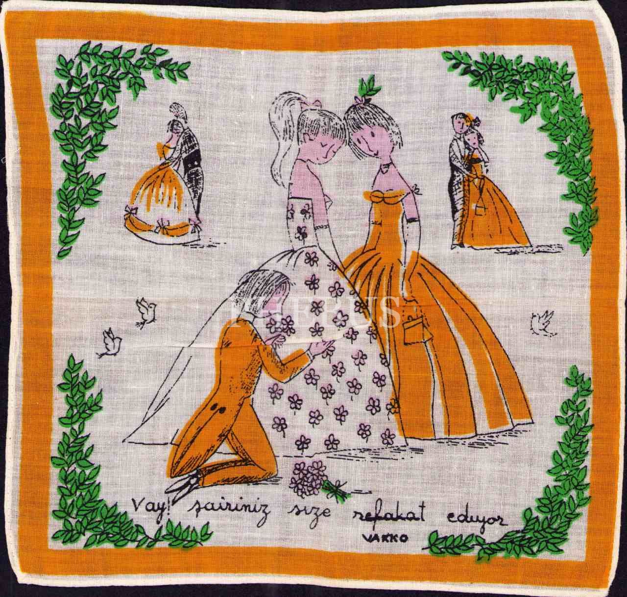 "Vay! Şairimiz size refakat ediyor" yazılı Vakko marka mendil, 22x23 cm