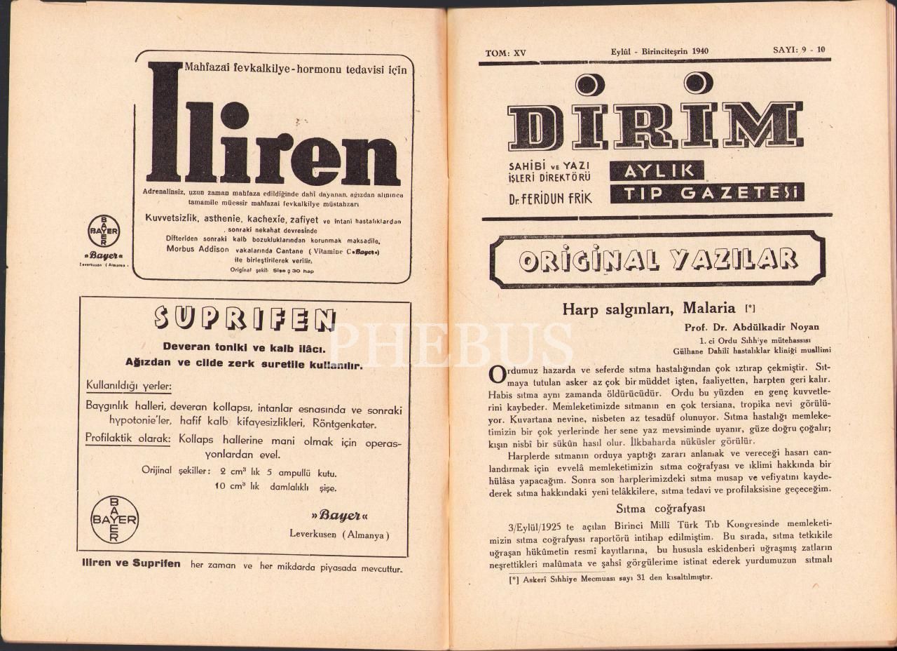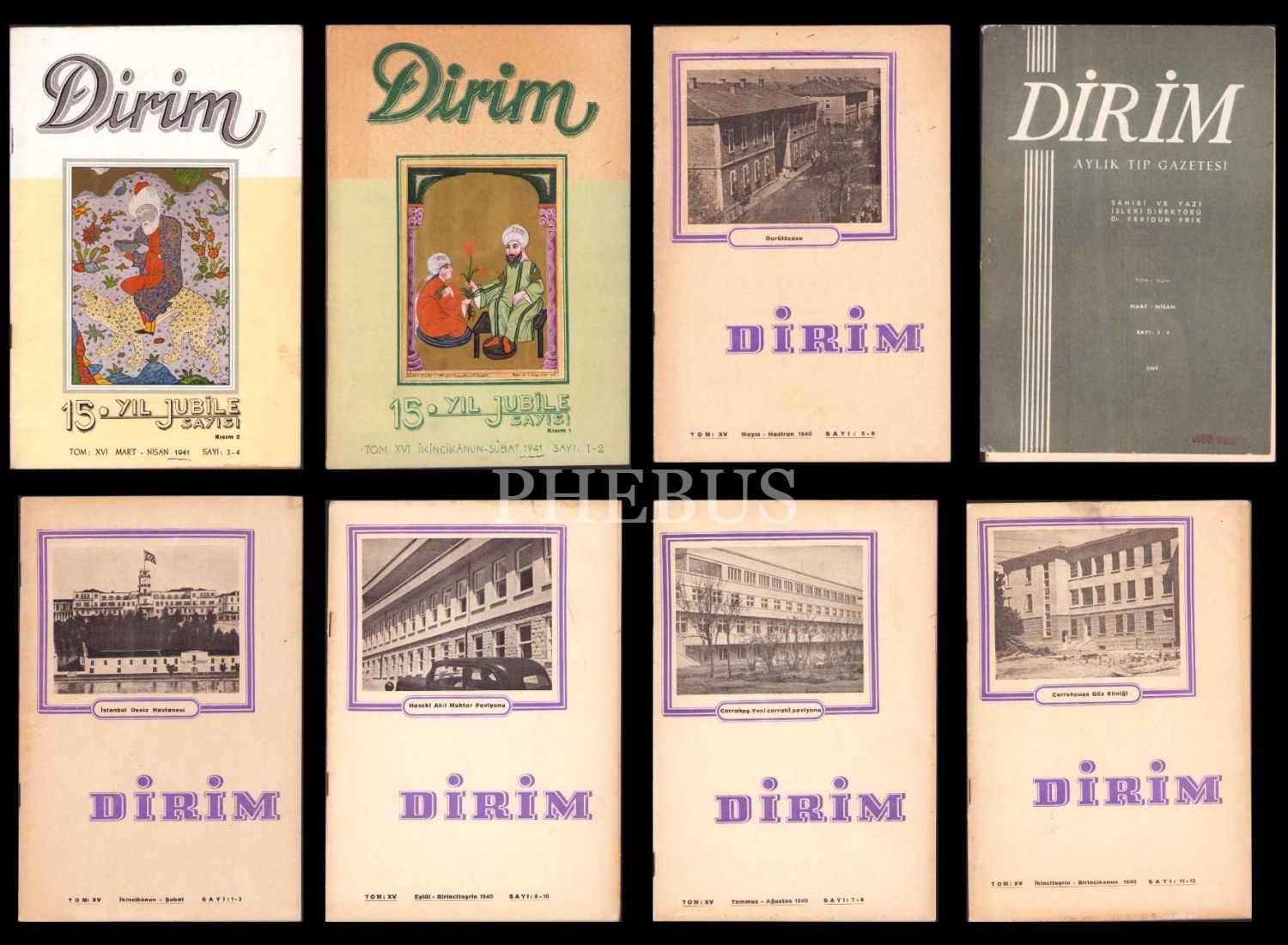 Dirim tıp dergisinin 1940-41 yıllarına ait 16 sayı, 16x24 cm