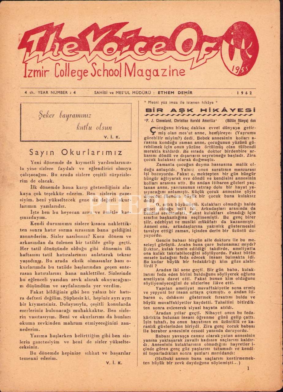 İzmir Koleji'ne ait okul dergisinin 4. sayısı, 1962, 20x28 cm