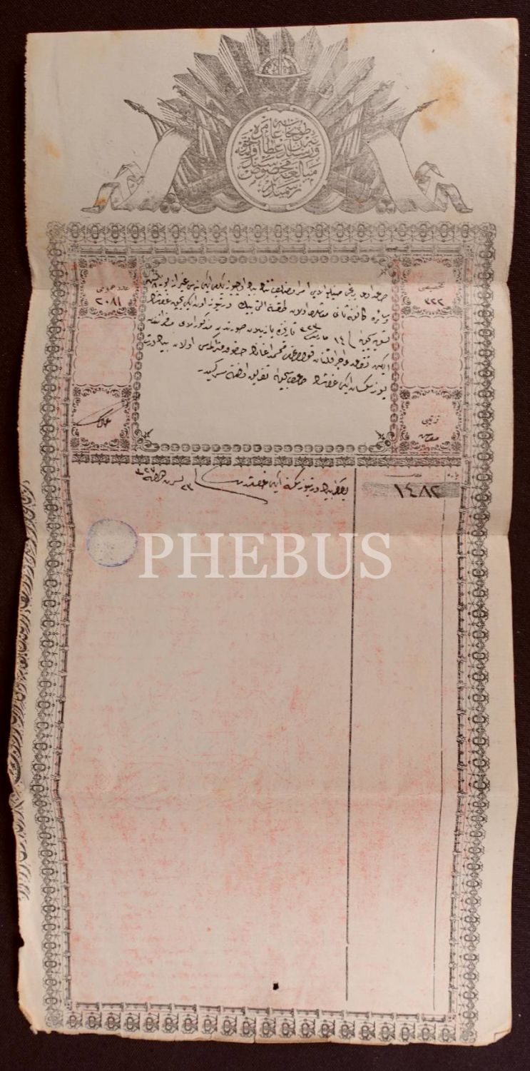 Tophane-i Amire'den emekli olmuş bir çalışanın birikmiş maaşlarının verildiğine dair Osmanlıca senet, 1327 tarihli, 22x46 cm